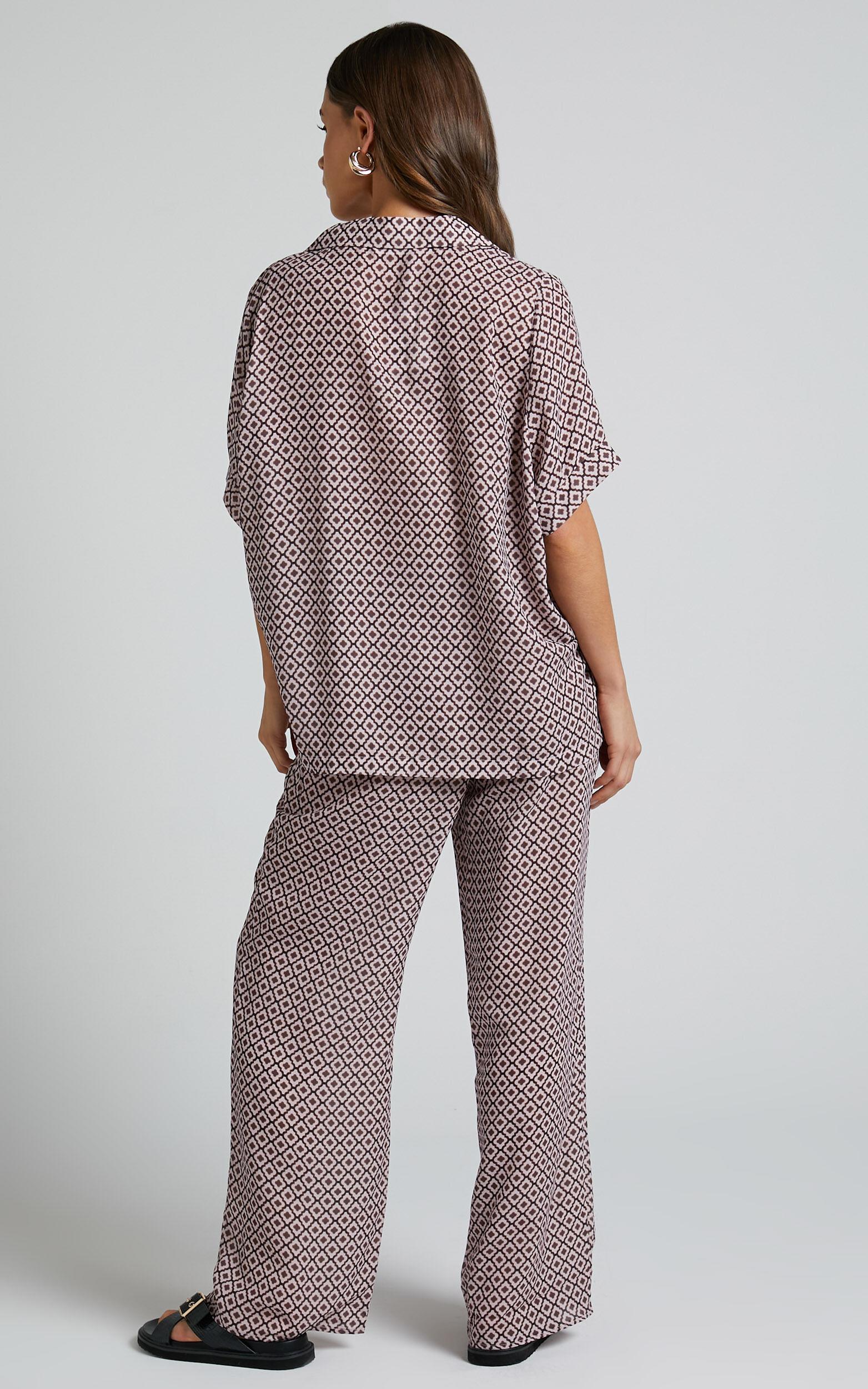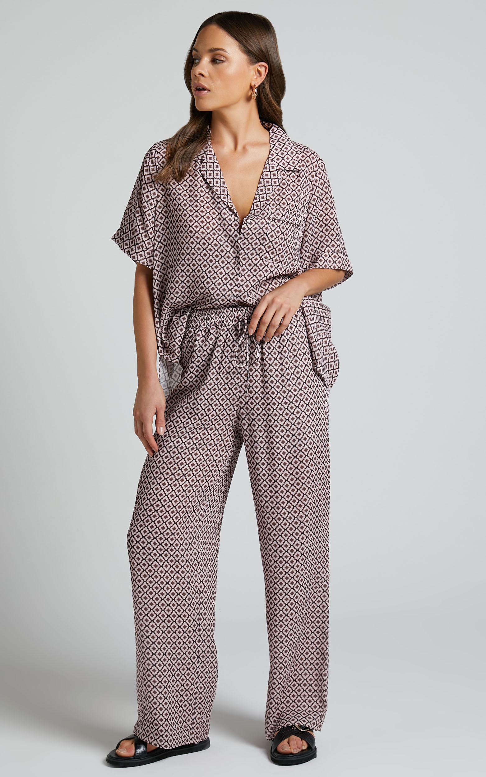 Our Brunita Pants are the perfect addition to your spring wardrobe! Featuring a vibrant Moroccan geo print in warm brown tones, these mid waisted pants are both casual and chic. The relaxed fit and elastic waistband ensure comfort for all-day wear, while the full length makes them versatile enough for any occasion.Dress them up with heels or keep it low-key with sneakers - either way, you'll be turning heads in these trendy pants. Don't miss out on this must-have piece for your closet!