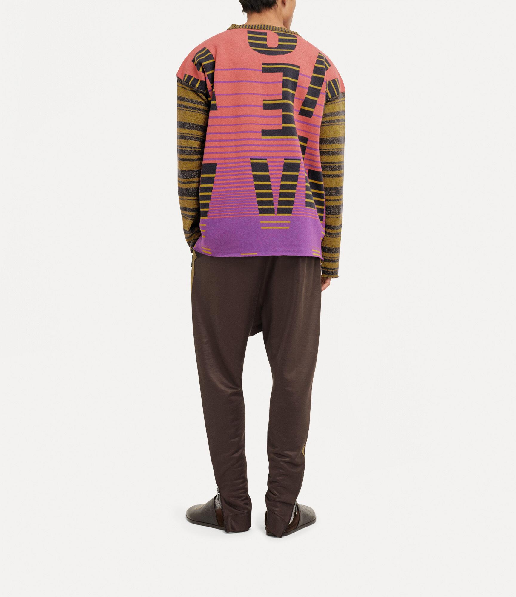 Our Bruno jumper is crafted from a cotton-wool blend with a round neckline and relaxed silhouette. The piece features this season’s striped ‘Logomania’ jacquard with a gradient effect, finished with a rolled hem and the house’s signature ‘TV’ knit stitch on the sleeves, evoking a fuzzy signal.
