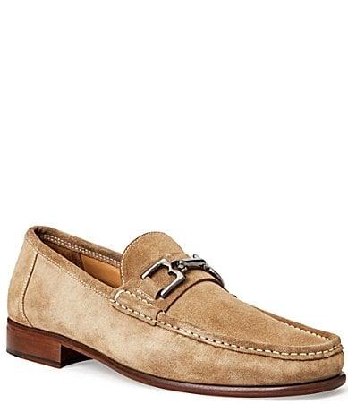 Crafted from Italian leather with detailed mocassin design, the Bruno Magli Trieste Loafers look sophisticated and stylish, elevating his look in an instant. Leather upper and lining. Leather insole. Slip-on style. Metal buckle on the front. Signature brand detailing on the insole. Moc toe design with stitch detailing on the upper. Low block heels. Leather and rubber outsole. Made in Italy. Made in Italy. Measurements: Weight: 14 oz Product measurements were taken using size EU 42 (US Men's 9), width D - Medium. Please note that measurements may vary by size.