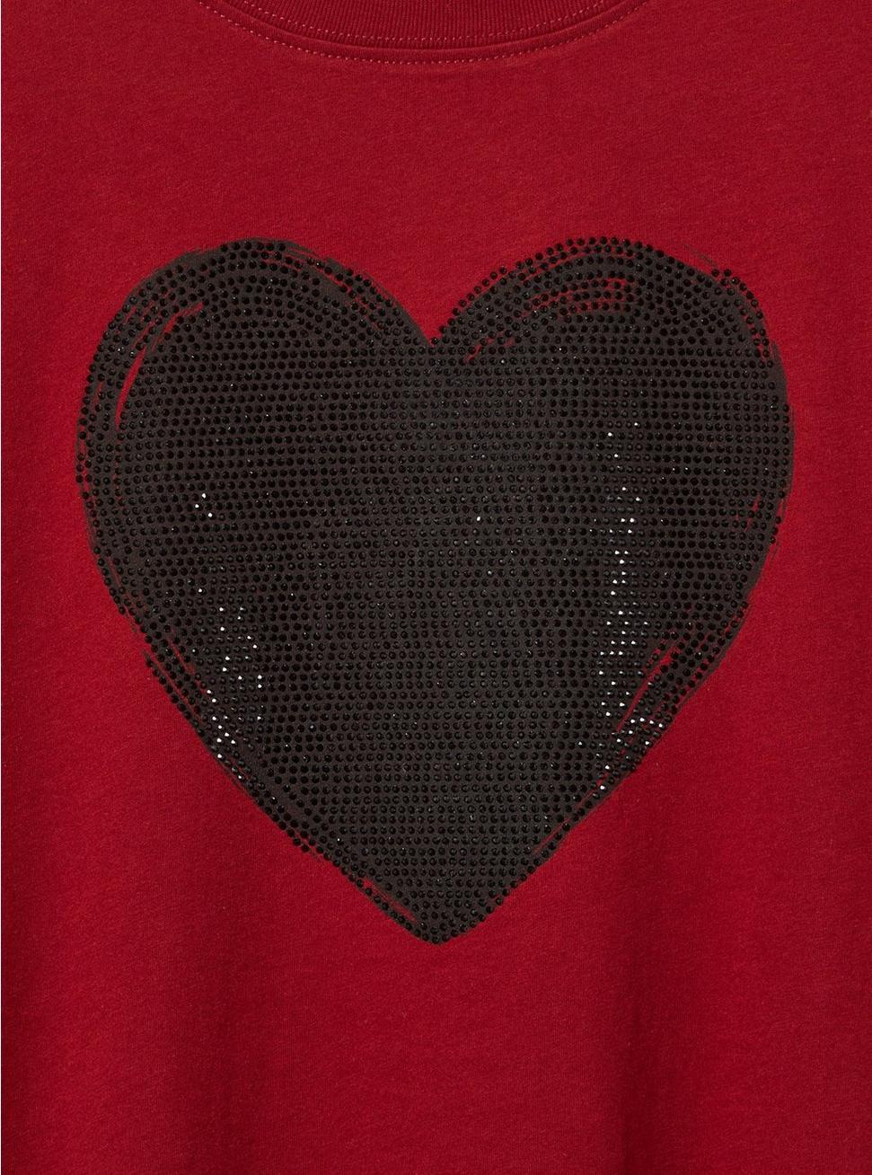 FITClassic fit: Fitted up top, eased through the body.Measures 30'' from shoulder (size 2).MATERIALS + CAREHeritage Jersey knit fabric: Your essential, textured cotton fabric.Stretch level: Maximum.100% cotton.Machine wash cold. Tumble dry low.Imported.DETAILS Crew neckline.Short sleeves.Brush heart graphic.Rhinestone detail.