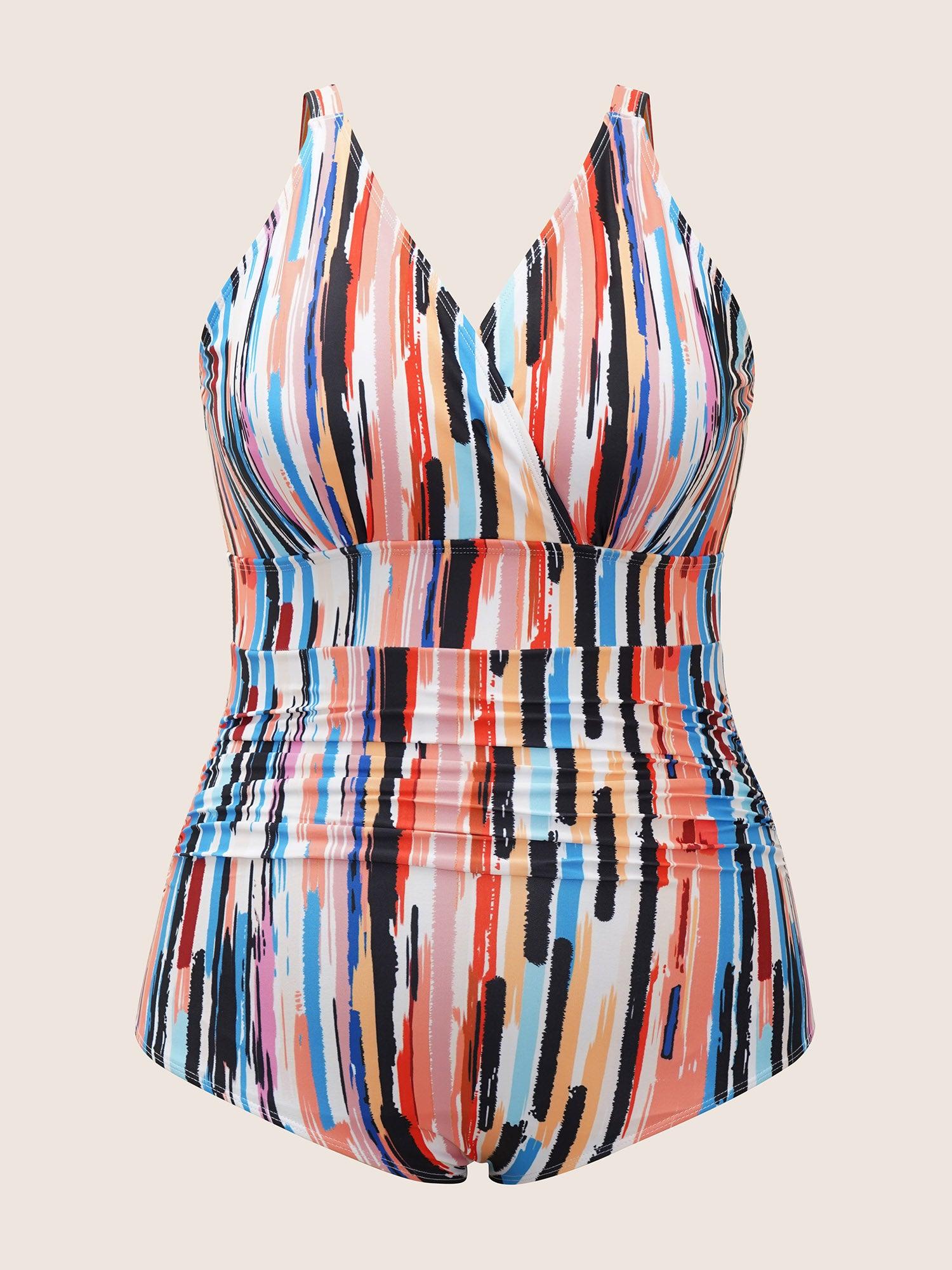 Shop Brush Print Wrap Ruched One Piece Swimsuit now and redefine your style with confidence at BloomChic. Tailored for mid and plus-size women. This trendy Swimwear Women, sizes 10-30. Season:Summer;Color:Multicolor;Style:Beach;Cup Type:Removable cups;Neckline:Overlap Collar;Sleeve Type:Sleeveless;Prints:Stripes;Details:Contrast;Pocket:No-pocket;Belt:No-belt;Chest pad:Removable Padding;Lining:Lining;Closure Type:Non