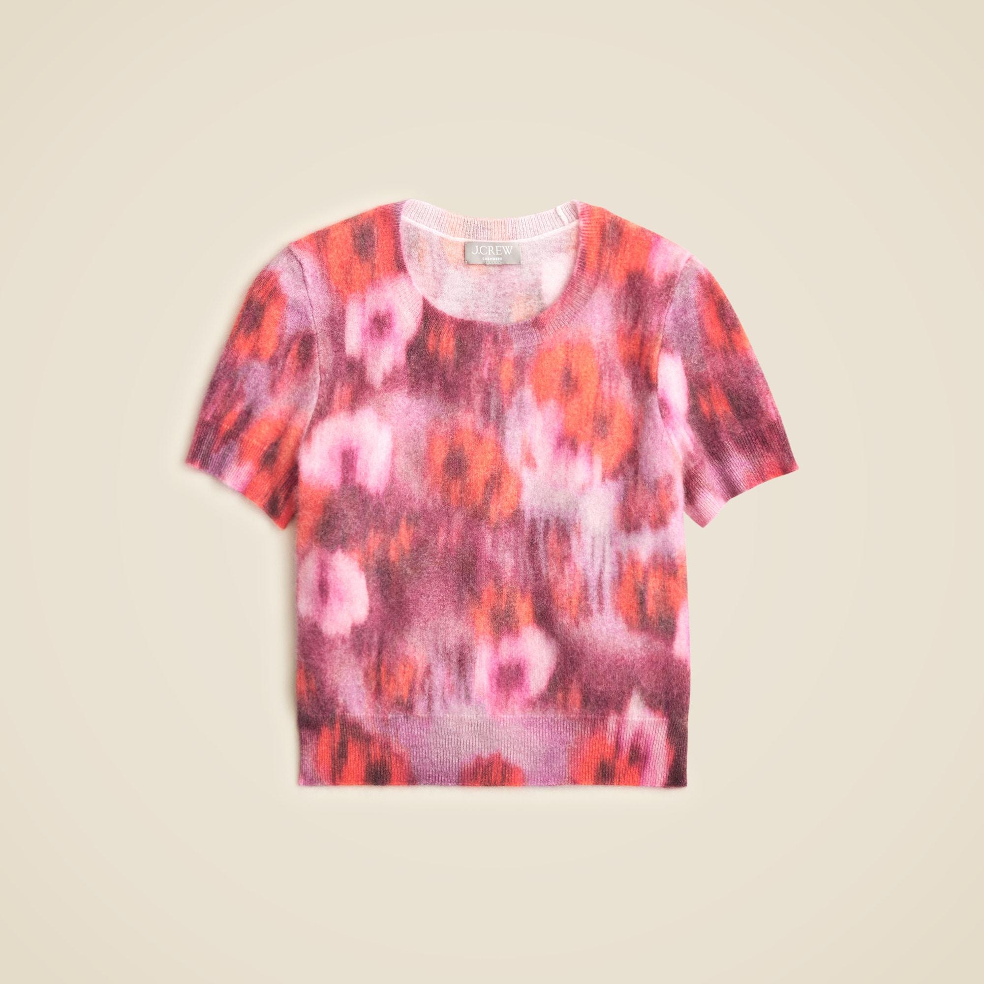 Brushed cashmere T-shirt in watercolor floral print