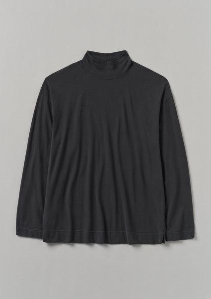 Cotton jersey. High neck. Dropped sleeves. Side hem slits.