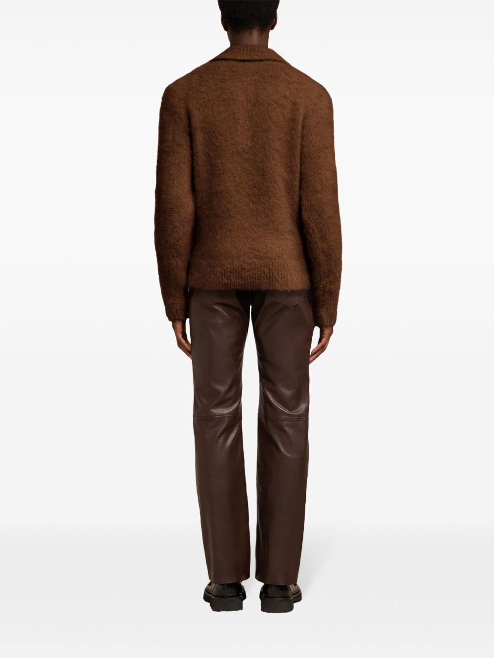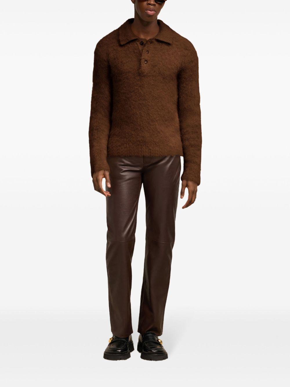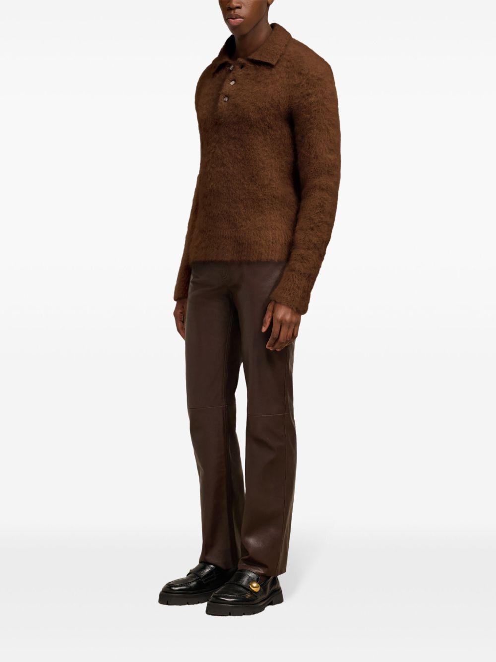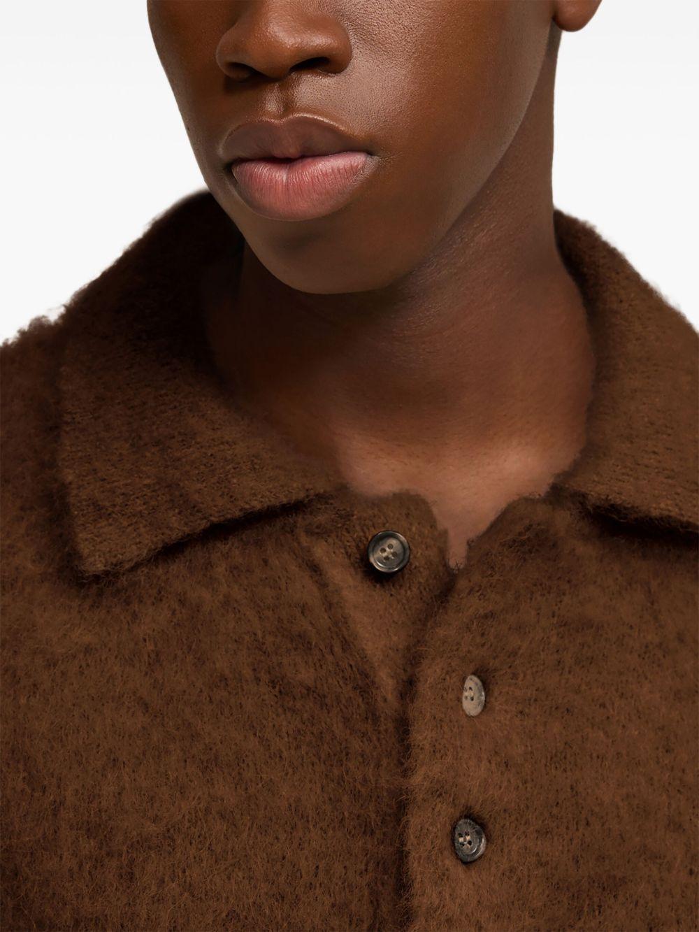 AMI Paris brushed-finish polo-collar jumper | Brown | chocolate brown | knitted construction | brushed finish | polo collar | front button placket | long sleeves | ribbed cuffs and hem | Alpaca Wool/Mohair/Polyamide/Elastane | Knitted Sweaters | Sweatshirts & Knitwear | Clothing | Men