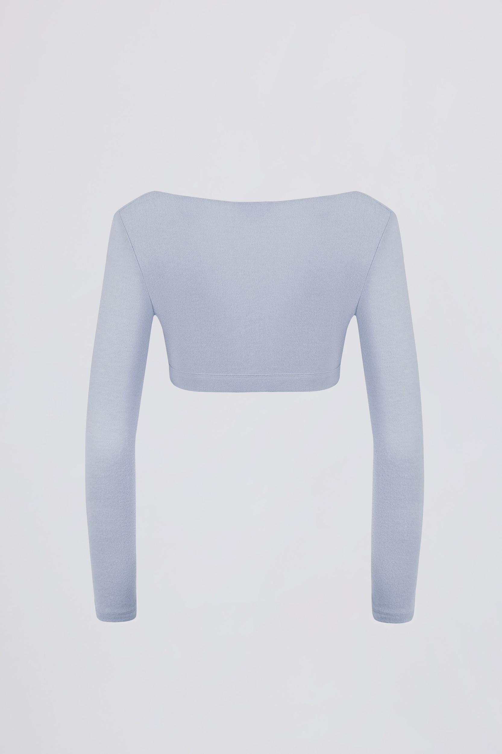 Unwind and look good. Perfect for styling on laid-back days, this top is crafted from our premium double-brushed jersey knit that’s super soft, breathable and made with a touch of stretch for maximum comfort. It’s cut to a clean cropped silhouette with a wrap neckline and a non-restrictive yet supportive elasticated hem tagged with a tonal Bo&Tee logo. Wrap crop top Plunge V-neck Long fitted sleeves Elasticated hem Woven Bo&Tee logo Pull-on design Bodycon fit Fully lined Super soft, stretchy and breathable brushed jersey (62% Polyester, 33% Viscose, 5% Elastane) Cropped length, front length approx. 30cm based on a size S Product code: BT1978