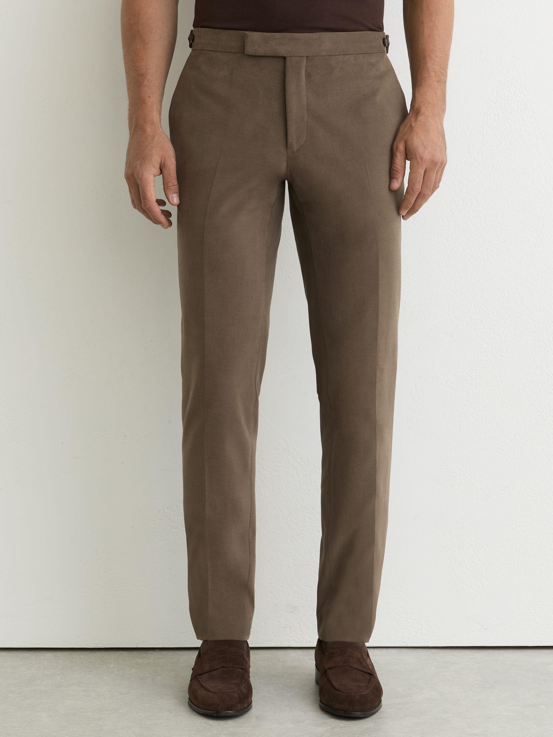 Brushed Twill Tailored-Fit Trousers in Taupe Brown