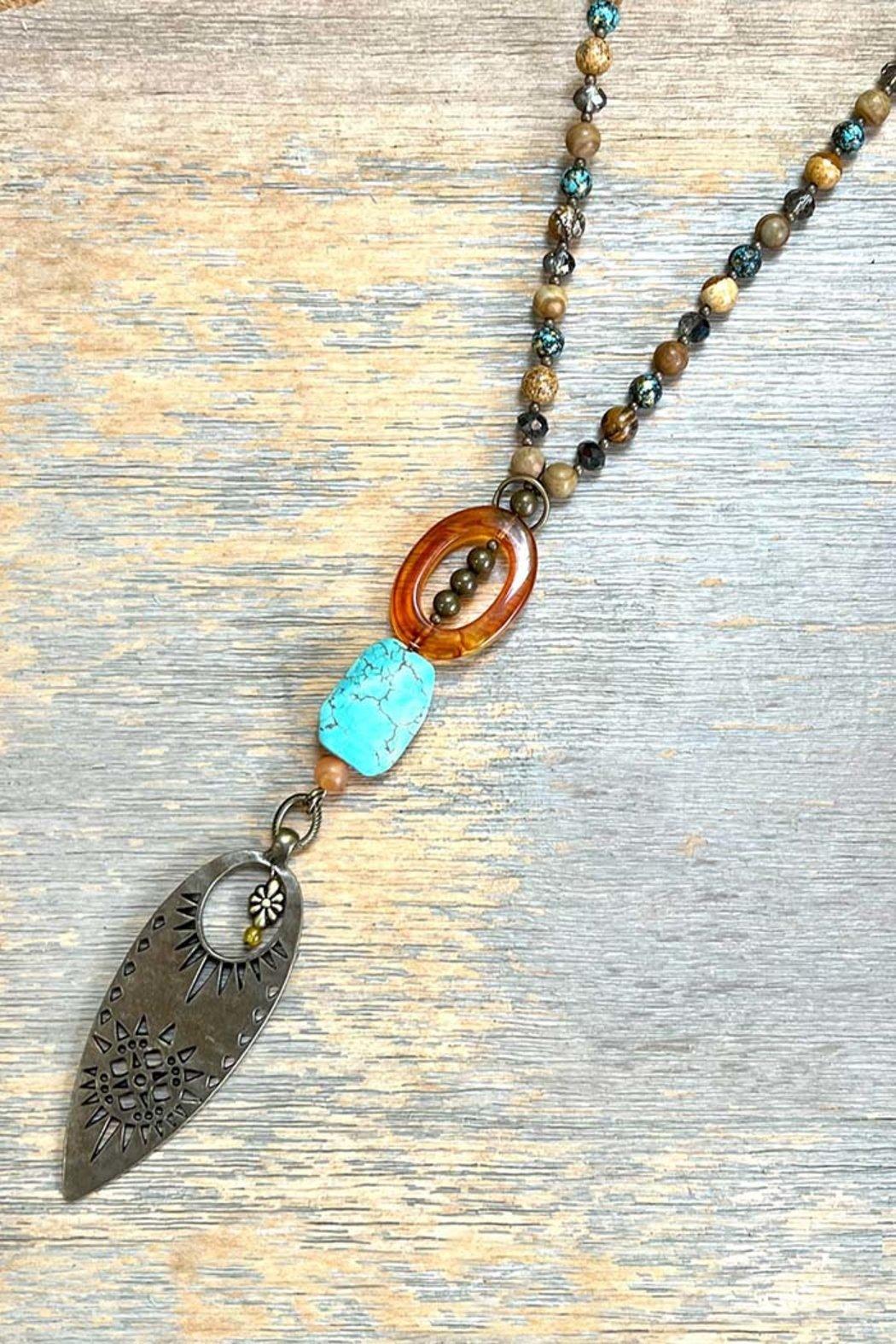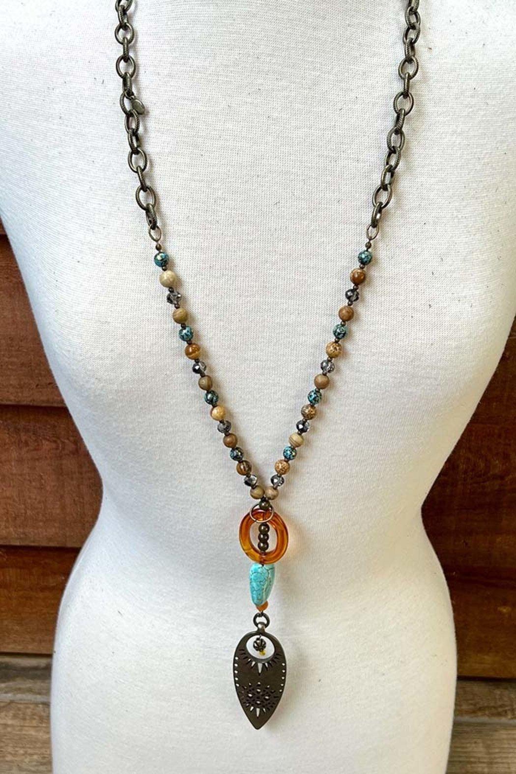 Make a statement with the versatile Bryce Bold Pendant necklace. Crafted from thick bronze chain links, this piece offers two stylish length options—wear it long at 25” or hook the lobster claw clasp to shorten it to 16” for a more layered look. The necklace features unique bead accents and a charming hanging pendant that adds character and flair to any outfit.