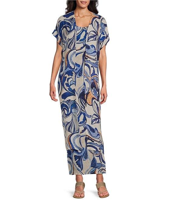 From Bryn Walker, this cardigan features: Printed woven fabrication Open front Short sleeves Relaxed fit Straight hem Pull-on construction Approx. 46" length ViscoseHand wash Made in the USA and Imported.