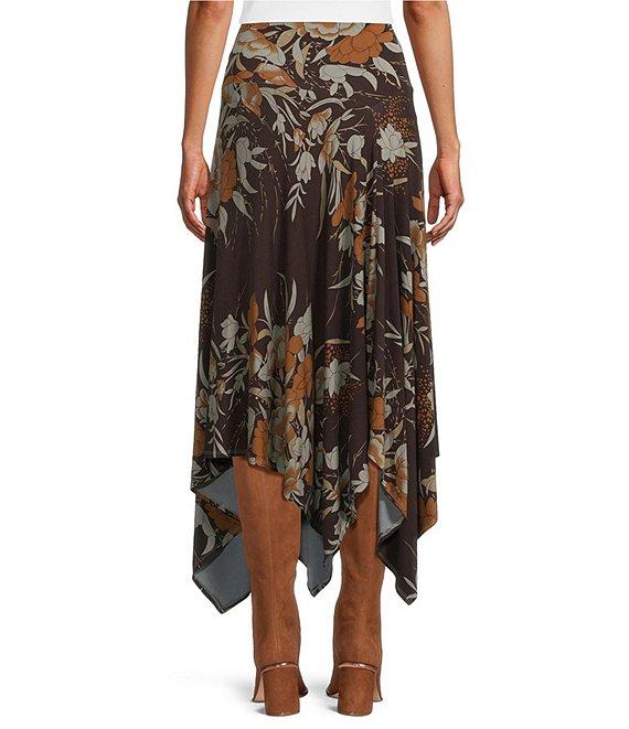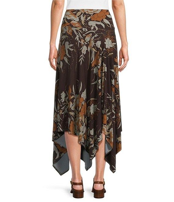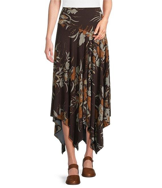 From Bryn Walker, this skirt features: Viscose jersey fabrication Fiori print Flat elastic waistband Asymmetrical hem Can be worn as a poncho or dress Pull-on construction Approx. 38" center front; 36" side length Siro rayon/spandex Machine wash Made in the USA.