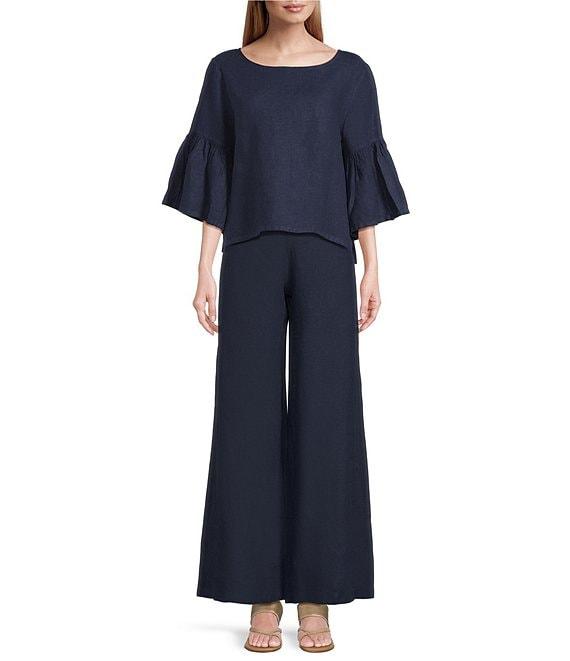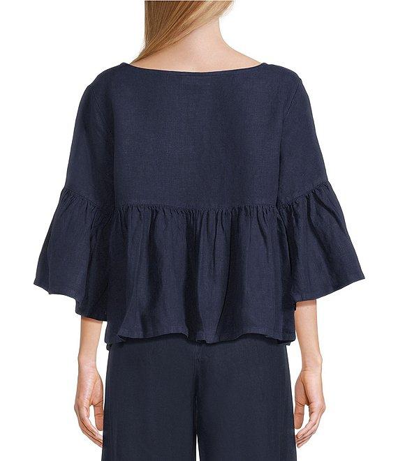 Bryn Walker Frida Light Linen Round Neck 3/4 Ruffle Bell Sleeve Shirt