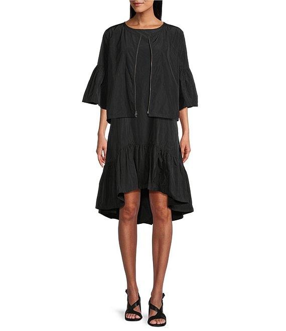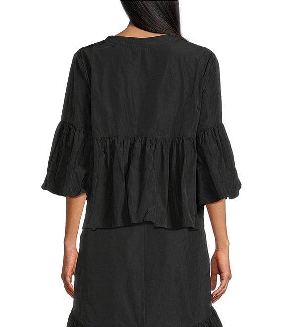 Bryn Walker Frida Memory Crunch Round Neck 3/4 Ruffle Sleeve Jacket