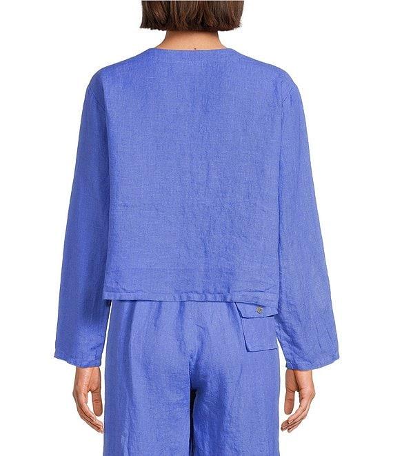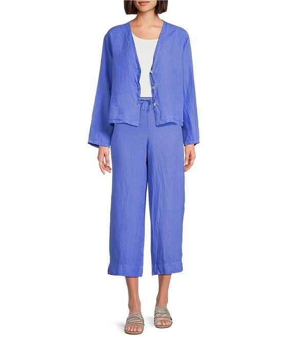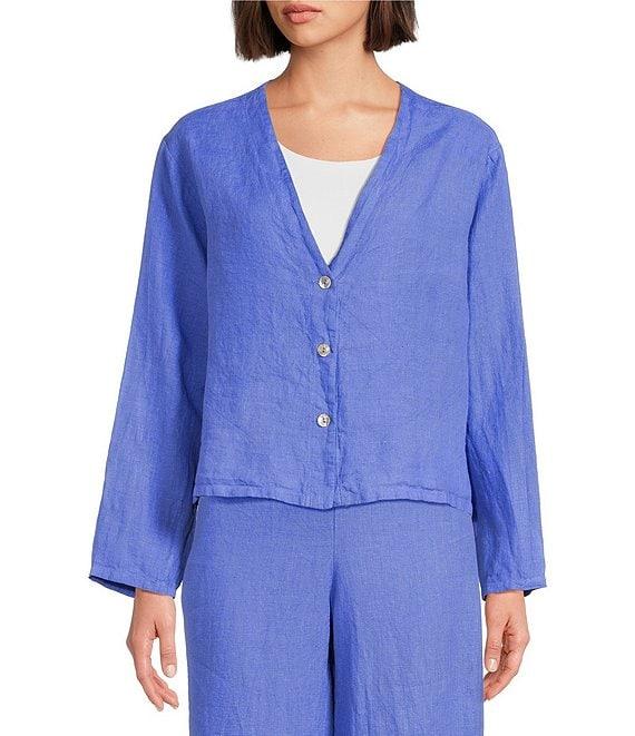 Bryn Walker Light Linen V-Neck 3/4 Sleeve Button Front Crop Cardigan