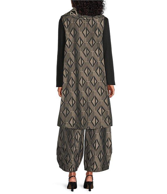 From Bryn Walker, this vest features: Memory crunch jacquard fabrication Shawl collar neckline Sleeveless Side pockets Straight hem Pullover construction Approx. 42" length Polyester Dry clean Made in the USA.
