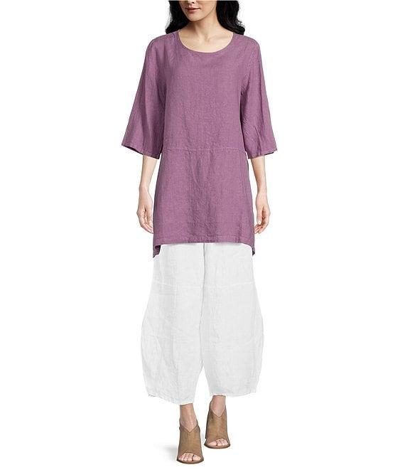 From Bryn Walker, these pants feature: Light linen fabrication Lantern silhouette Elastic waistband Inset side pockets Horizontal seam above the ankle Oversized fit Pull-on construction Approx. 25.5" inseam Linen Machine wash/tumble dry Made in the USA.