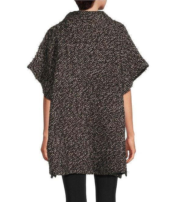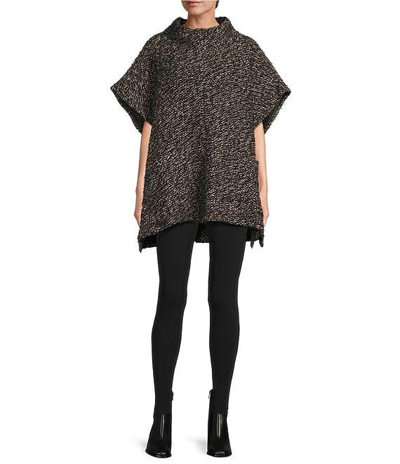 From Bryn Walker, this poncho features: Knit fabrication Mock neckline Elongated cap sleeves Front patch pockets Straight hem Pullover construction Approx. 29" length Acrylic/virgin wool/nylon/polyester Hand wash Made in the USA and Imported.