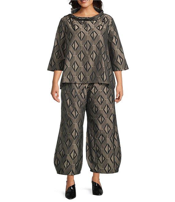 From Bryn Walker plus, this pant features: Memory crunch jacquard fabrication Aswan print Elastic waistband Tapered wide leg silhouette Side pockets Pull-on construction Approx. 28.5" length Polyester Dry clean Imported.