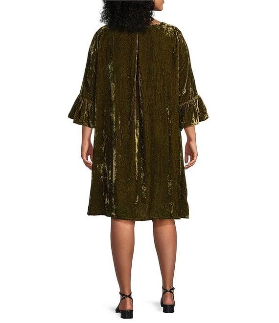 Bryn Walker Plus Phryne Maltinto Velvet Round Neck 3/4 Bell Sleeve Dress