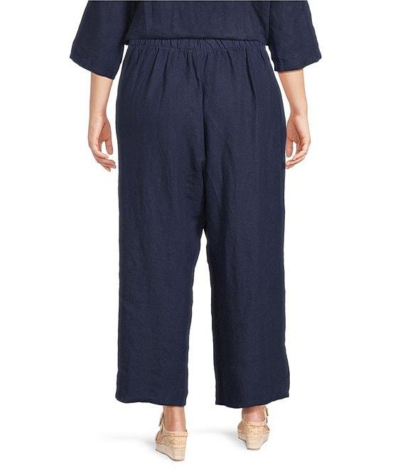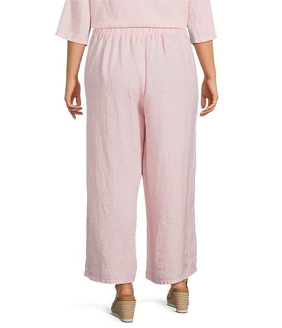 Bryn Walker Plus Size Light Linen Elastic Waist Wide Leg Flood Pants