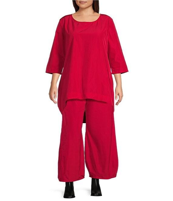 Bryn Walker Plus Size Memory Crunch Round Neck 3/4 Sleeve High-Low Tunic