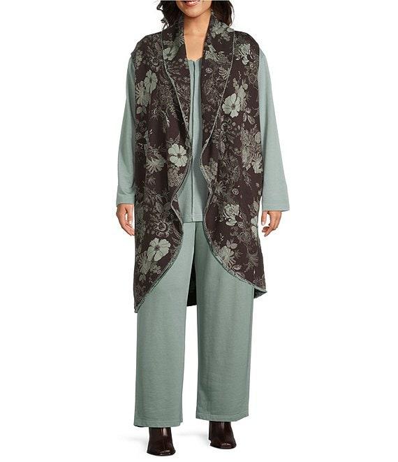 Bryn Walker Plus Size Oversized Floral Print Bamboo Fleece Shawl Collar Sleeveless Wrap Vest