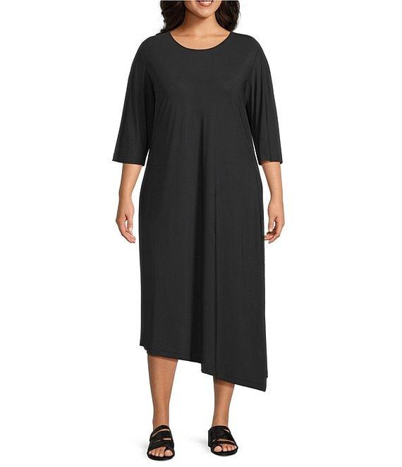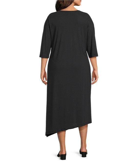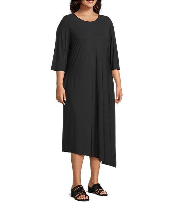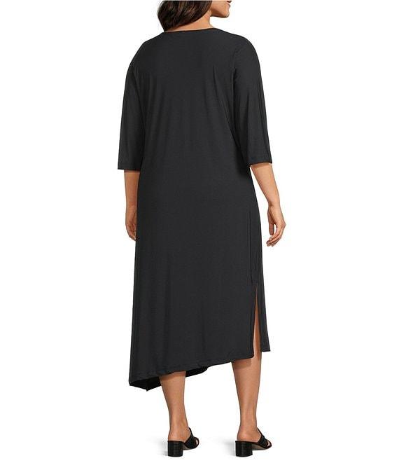 From Bryn Walker Plus, this dress features: Microfiber jersey fabrication Round neckline Elbow sleeves Asymmetrical hem True to size fit Pullover construction Approx. 54.25" long side; 48.75" short side; 47.75" center back Polyester/elastane Machine wash / tumble dry low Made in the USA.
