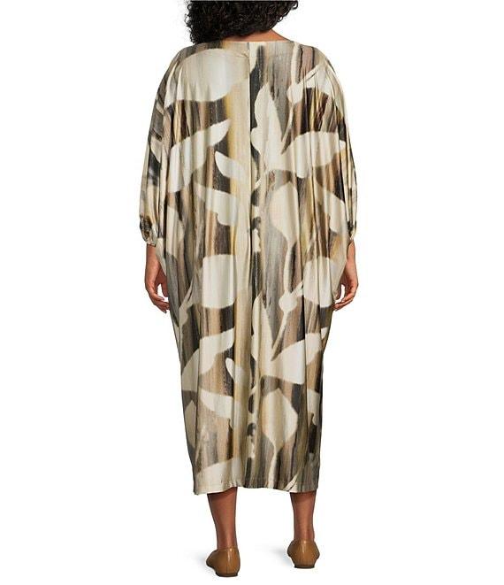 Bryn Walker Plus Size Wilder Arroyo Print Stretch Knit Boat Neck Elbow Dolman Sleeve Maxi Dress