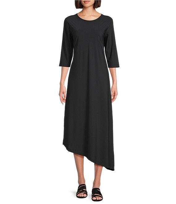 From Bryn Walker, this dress features: Microfiber jersey fabrication Round neckline Elbow sleeves Asymmetrical hem True to size fit Pullover construction Approx. 50" long side; 44" short side; 45" center back Polyester/elastane Machine wash /tumble dry Made in the USA.