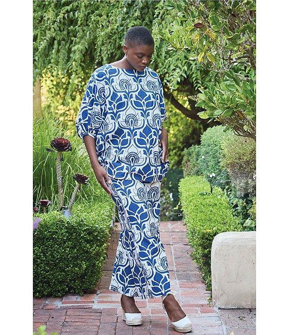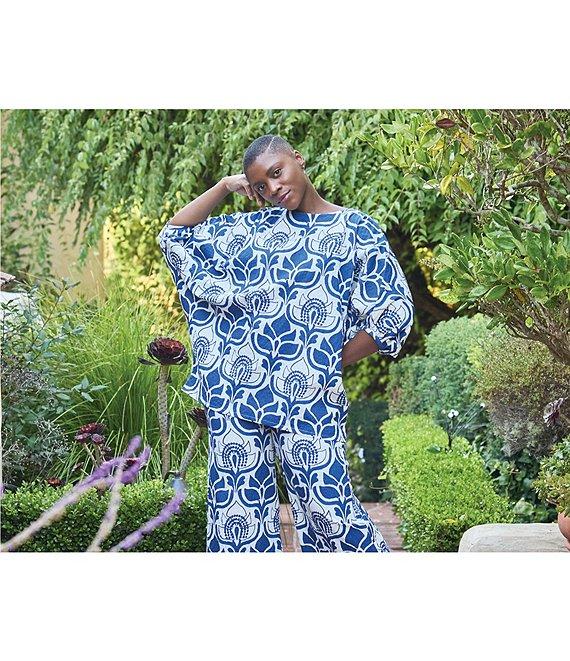 Bryn Walker Wilder Tulum Azul Cielo Print Round Neck Elbow Sleeve Tunic