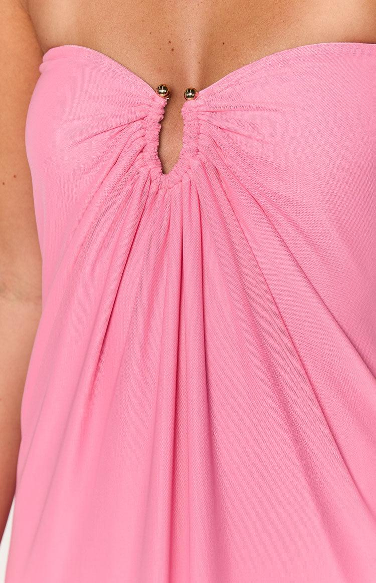 Pink Strapless Mesh Maxi DressHow to style:Make a stunning statement in our Brynner Pink Strapless Maxi Dress featuring a gorgeous gold U-bar detail at the bust that adds a touch of glam. The flowy silhouette falls beautifully, creating an effortlessly elegant look that's perfect for summer soirées or special occasions. Pair with gold jewellery and heels for an effortlessly elegant look!Features: Strapless design Gel grip on inner bust Gold metal detail at bust Lots of stretch Mesh outer Flowy style Fully lined Babylock hem