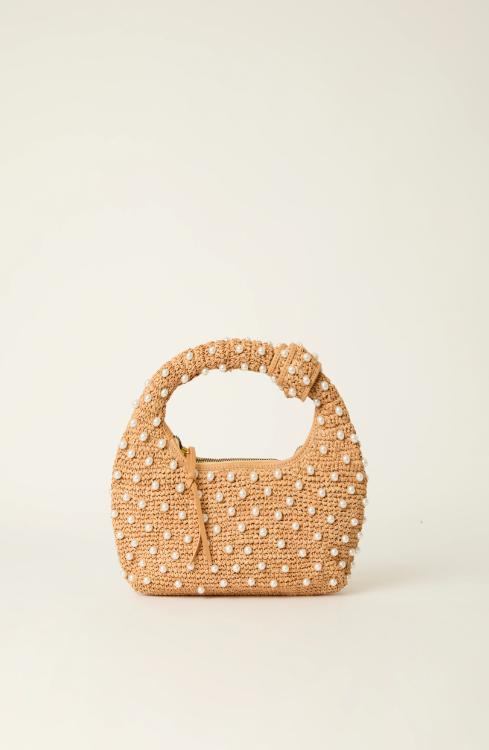 This gorgeous bag is guaranteed to catch eyes, offering a perfect balance of timeless elegance and practicality. Made from luxurious raffia, its smooth pearl design adds a radiant touch to any look, whether it's daytime or nighttime.