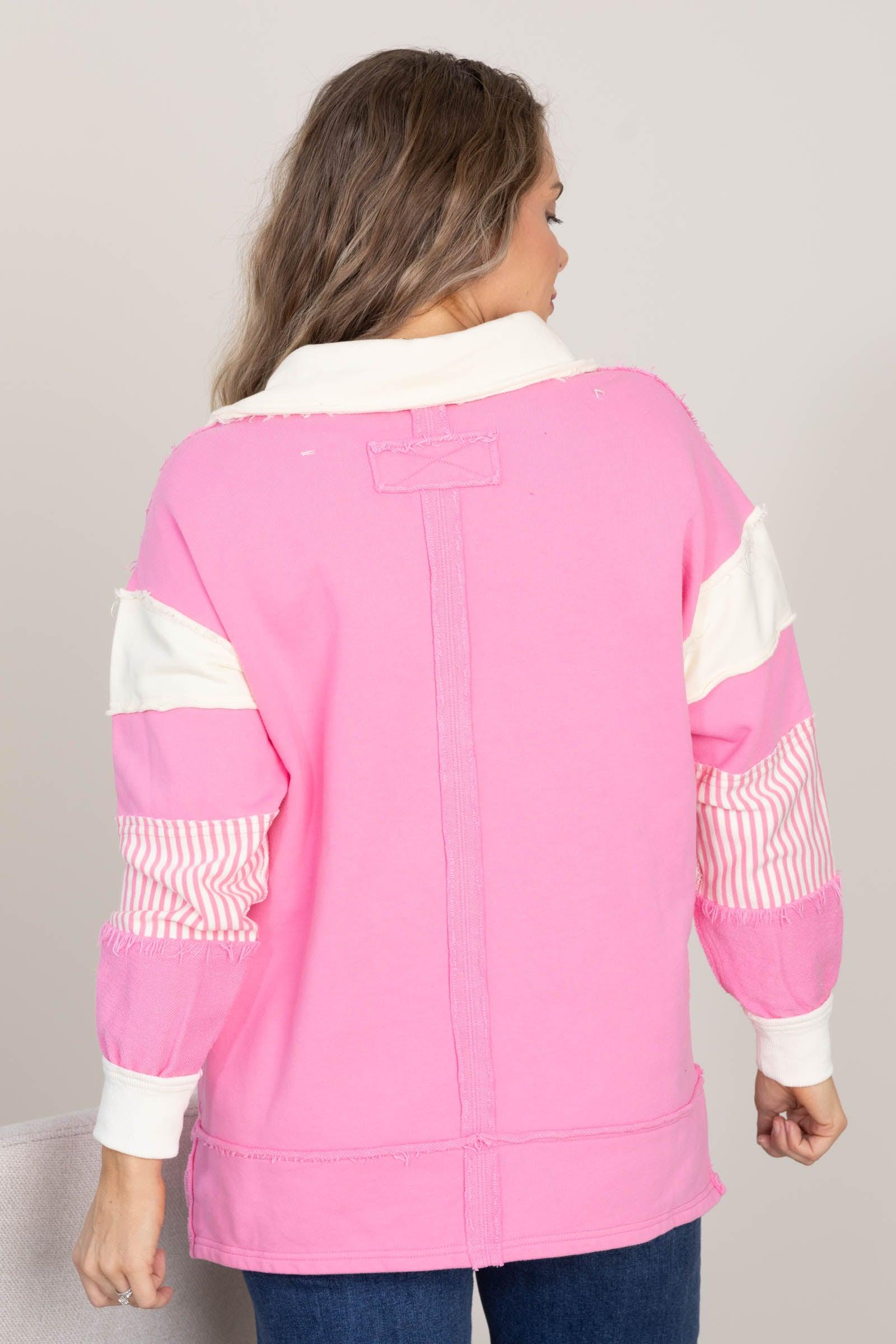 Product Details Colors: Bubble Gum Pink, Cream Print: Colorblock Neckline: V-Neck Sleeve: Long Sleeve Hemline: Straight Brand: Lovely Melody Material and Care Self: 100% Cotton Contrast: 100% Cotton Hand Wash Cold Hang/Line Dry Size and Fit Small: Bust 46" Waist 44" Length 28" Medium: Bust 48" Waist 46" Length 28.5" Large: Bust 50" Waist 48" Length 29" X Large: Bust 52" Waist 50" Length 29.5" Erica is 5’7” and wearing her true size small