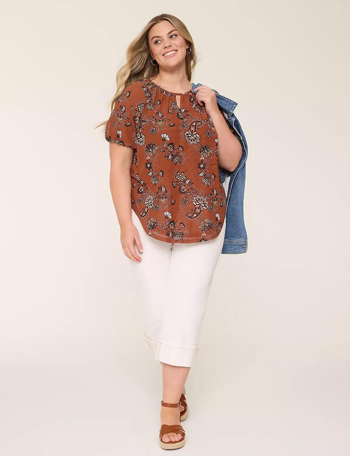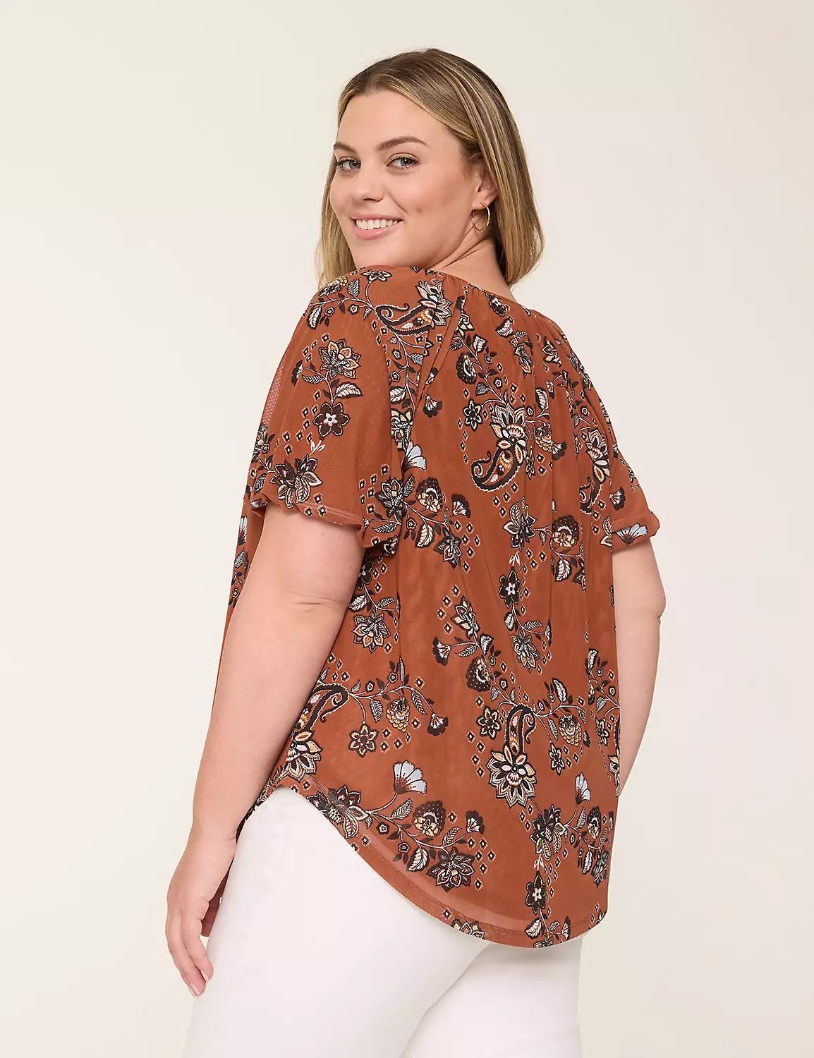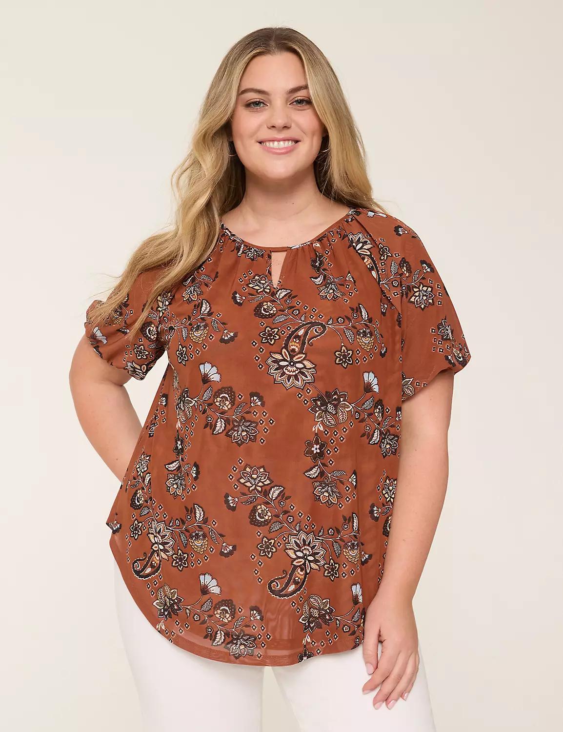Bubble-Sleeve Notch-Neck Top