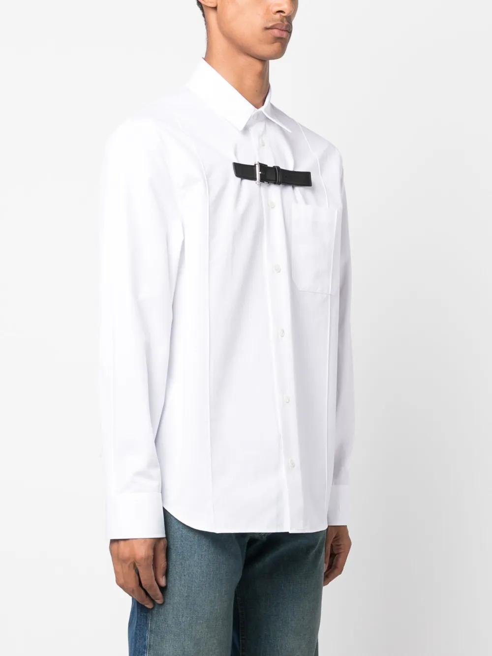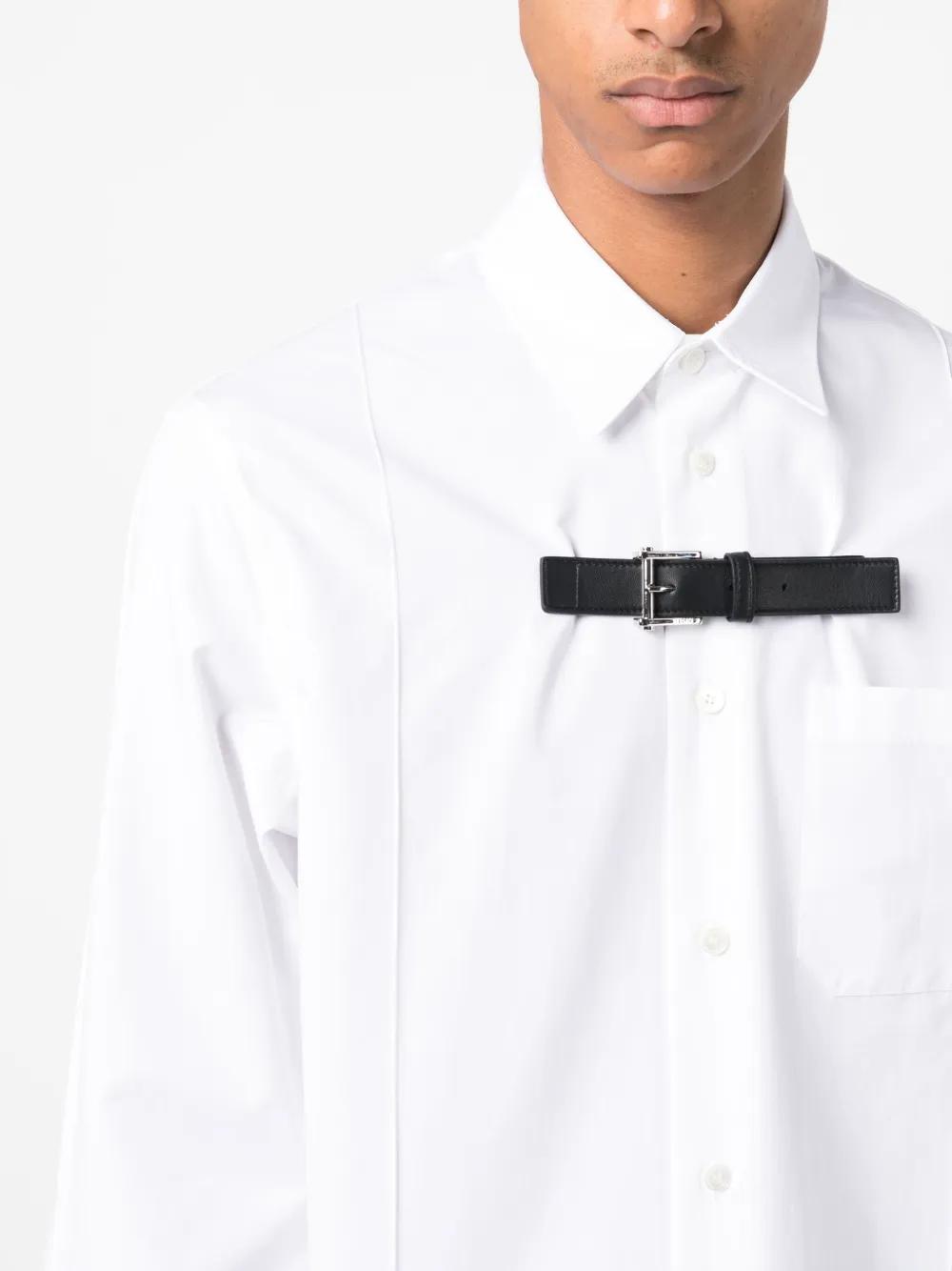 Versace's maximalist aesthetic is often displayed through the reinvention of classic tailoring staples such as this white shirt. Crafted from cotton poplin, the long-sleeved design is embellished with a smooth lambskin buckle at the chest.
