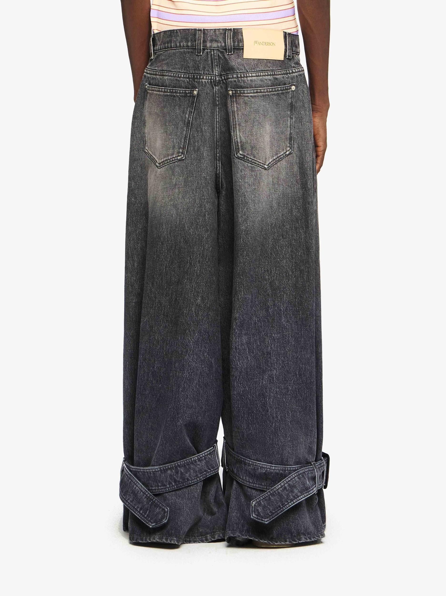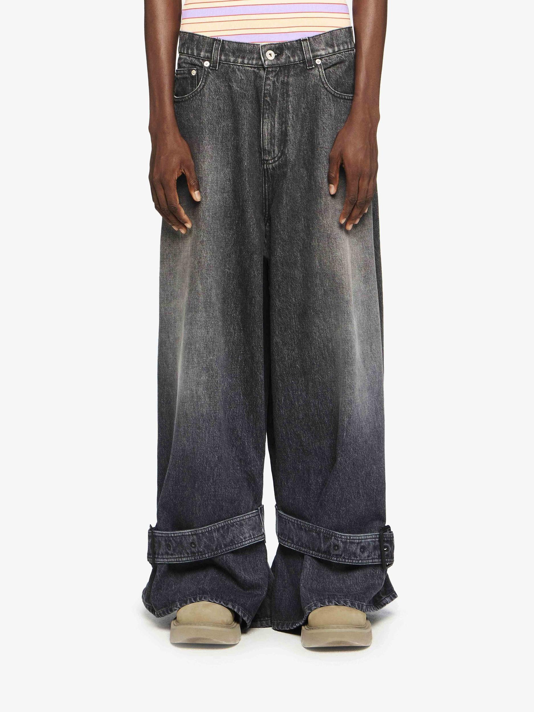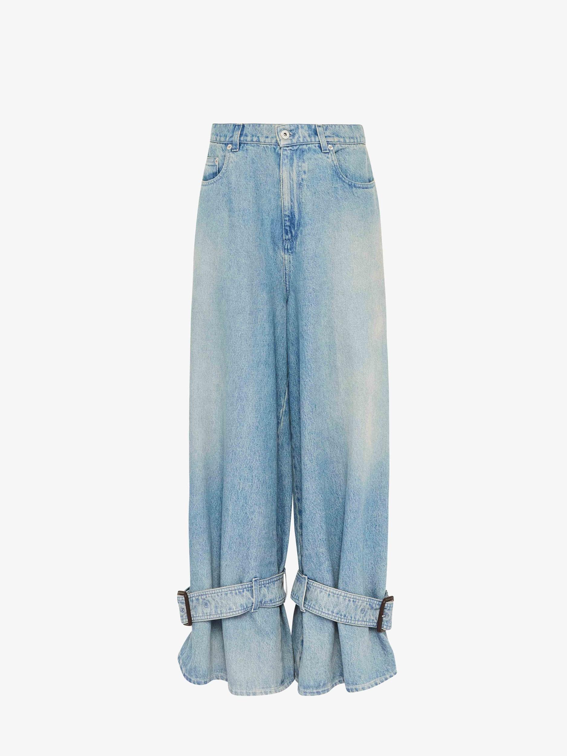 Wide leg jeans with belted cuff detailing Mid-rise waistline Leather patch with logo embossed on the back Oversized fit - take your usual size