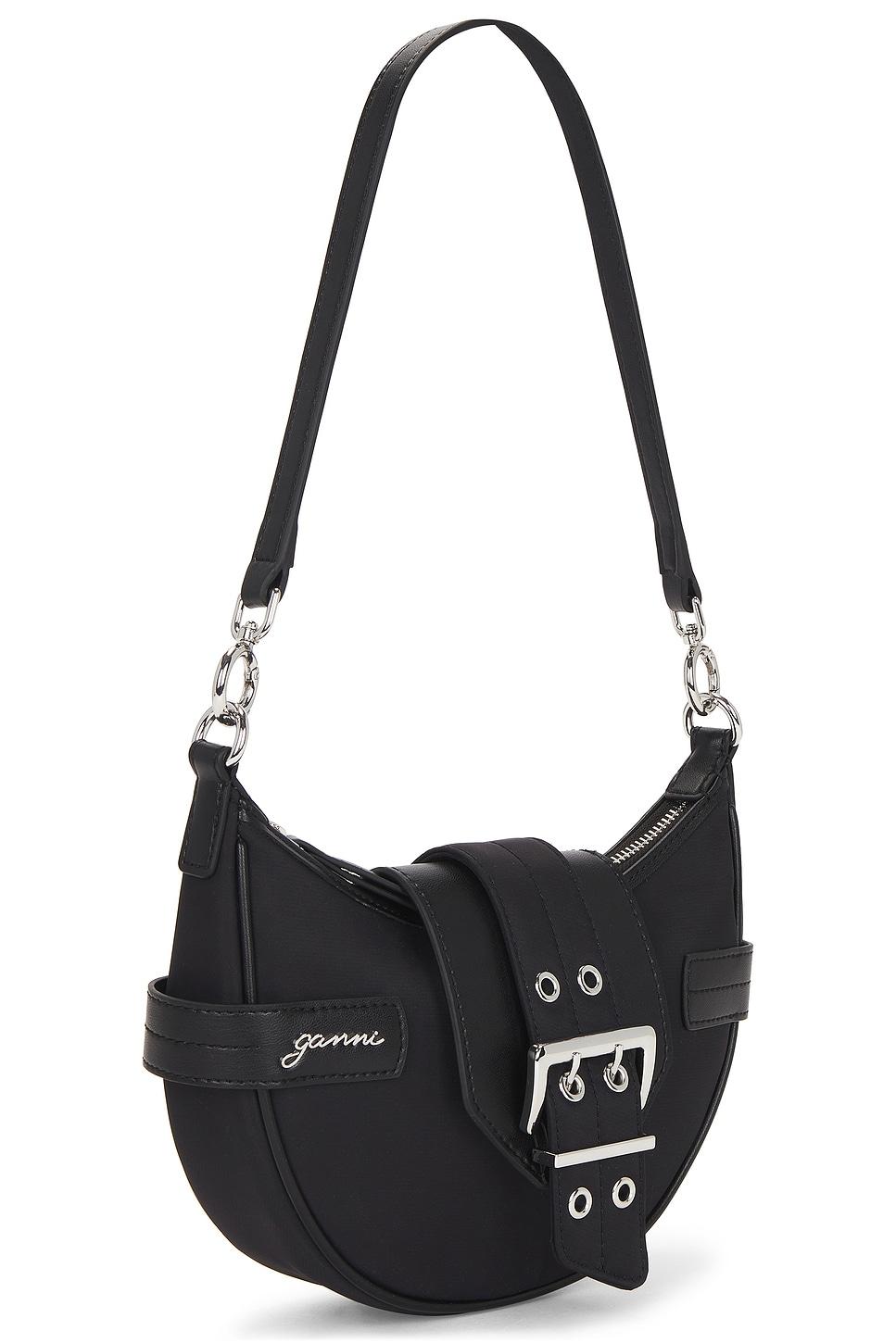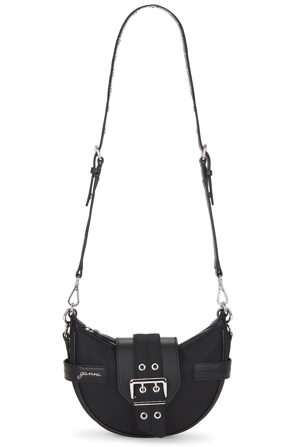 Nylon exterior and lining. Flap with snap and top zip closures. One main compartment. Silver-tone hardware. Measures approx 9"W x 6.5"H x 2.5"DShoulder strap with a 20" drop. Made in China. Revolve Style No. GANR-WY126. Manufacturer Style No. A6134.