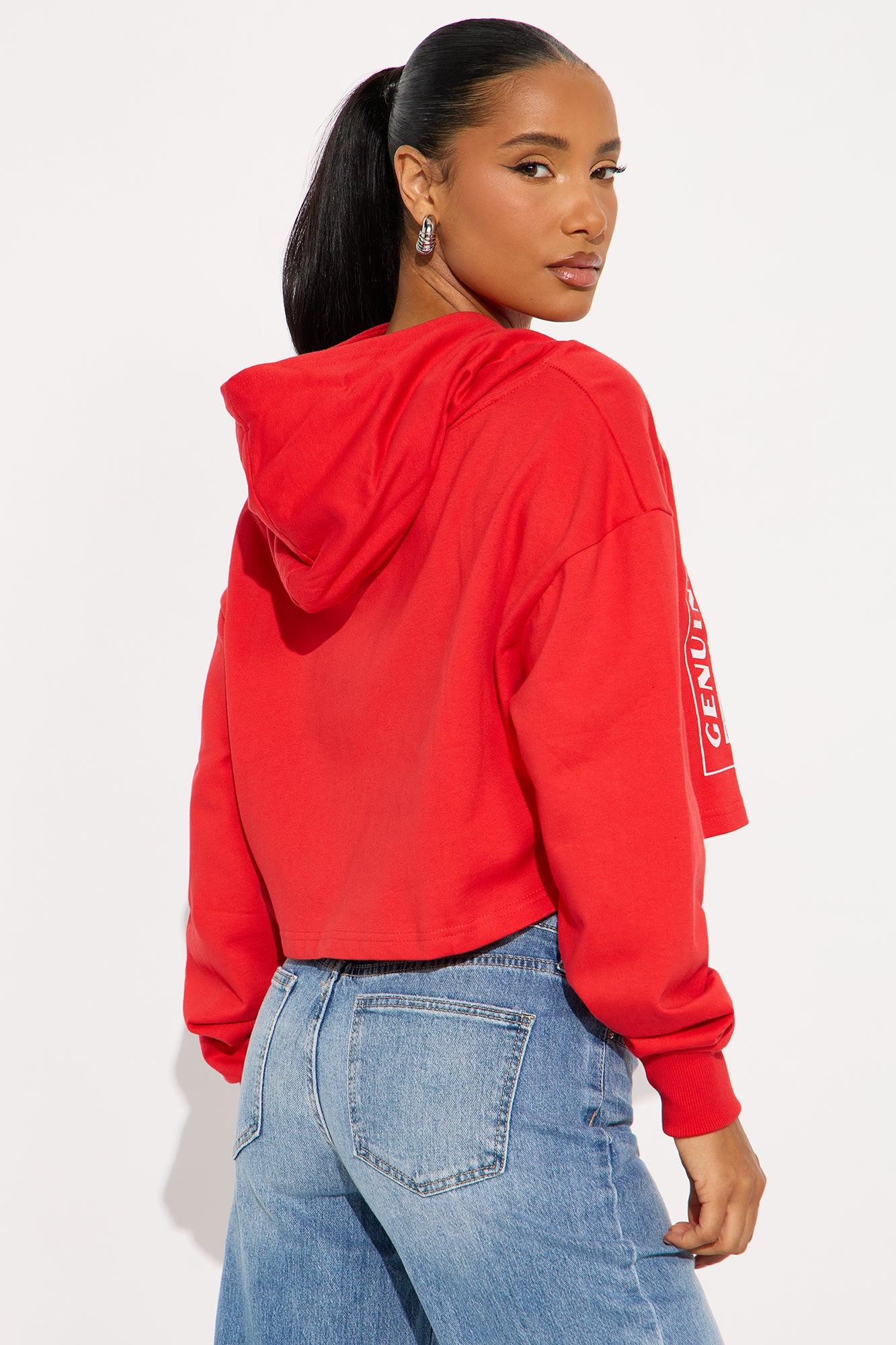 Available In Red. Hoodie Long Sleeve Cropped Self : 60% Cotton 40% Polyester Imported