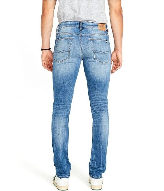From Buffalo David Bitton, these jeans feature: Authentic Collection Series Blue-veined and crinkled wash Slim leg Regular rise waist Zip fly/button closure with belt loops Flat front Buffalo standard back pocket embroidery Eco-friendly waistband patch 5-pocket styling Cotton/polyester/recycled cotton/elastane Machine wash/dry flat Imported.