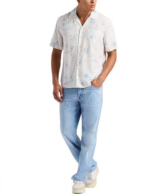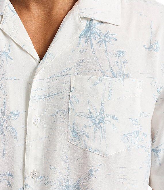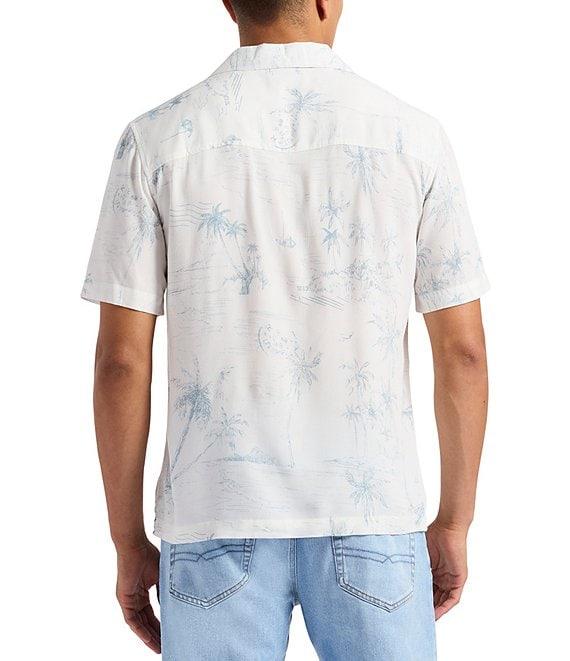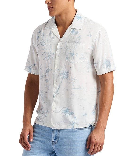 From Buffalo David Bitton, this shirt features:Allover palm tree printRegular fitPoint collarShort sleevesRelaxed shouldersButton-front closurePatch pocket on the left side of the chestSlightly generous midsection for flattering silhouetteLightweight and breathable fabricViscoseMachine wash/tumble dryImported.