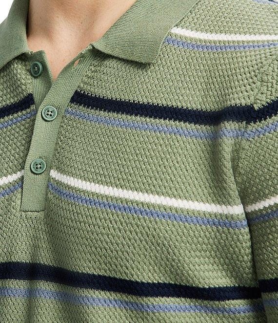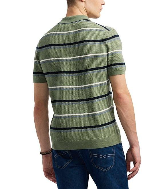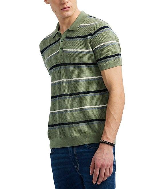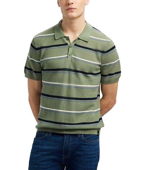 From Buffalo David Bitton, this shirt features: Striped pattern Polo collar Short sleeves Relaxed shoulders 3-button placket Regular fit with generous mid section Timeless classic with a touch of versatility Relaxed silhouette that exudes effortless charm Sweater knit cotton Machine wash/tumble dry Imported.