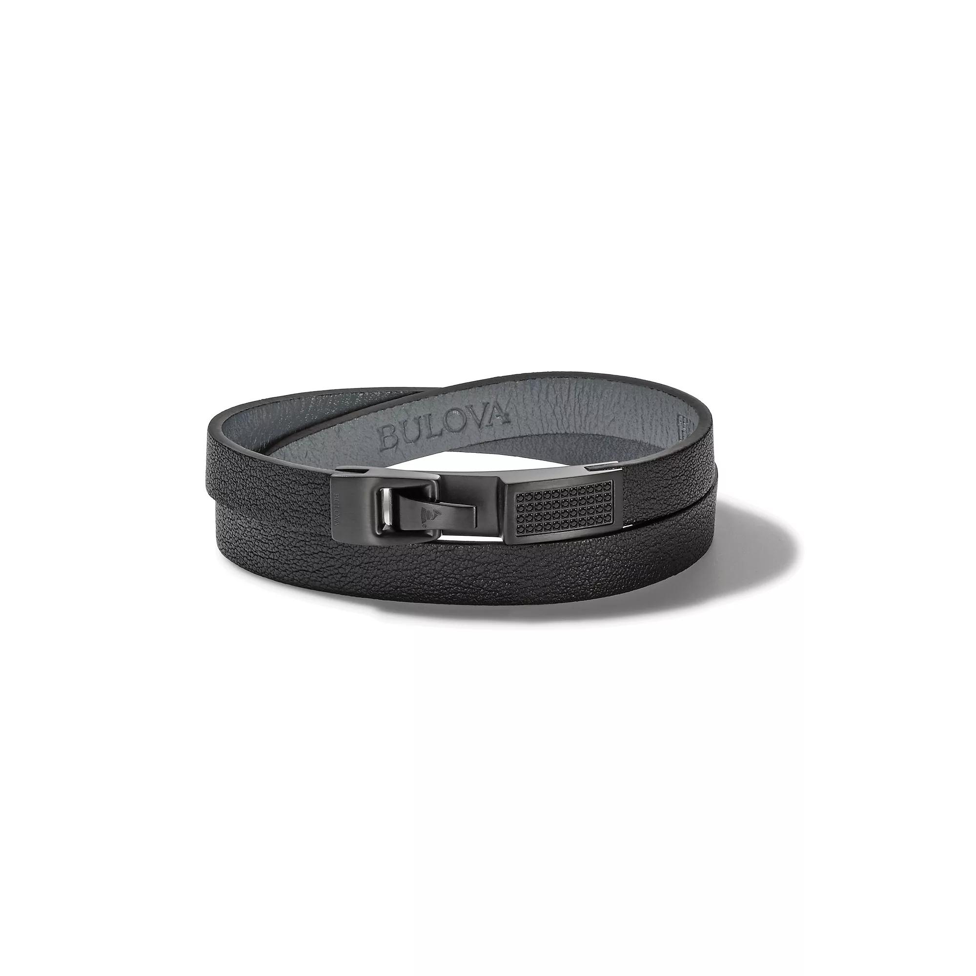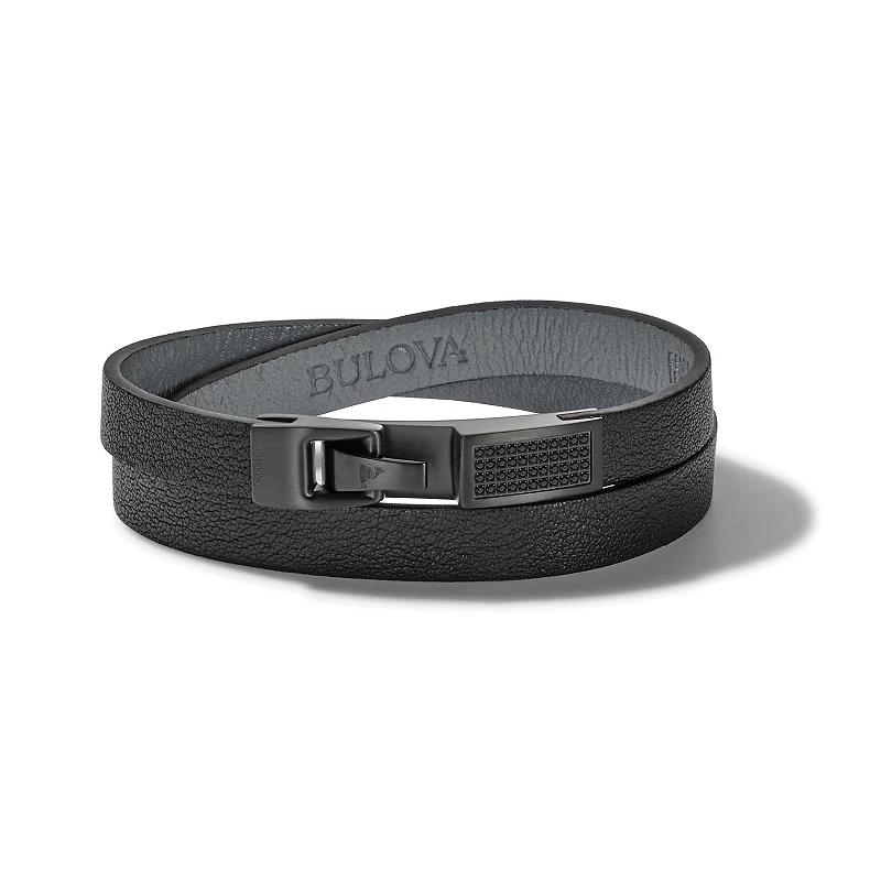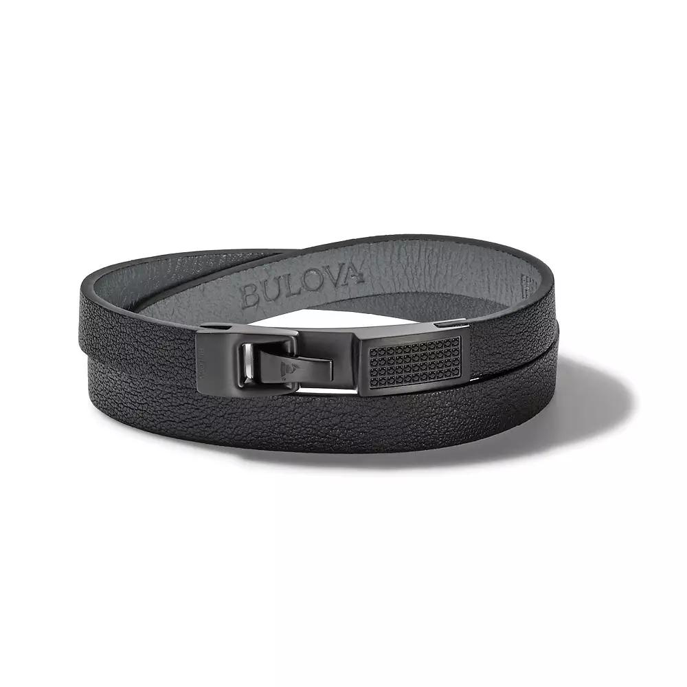 This Bulova Mens Latin Grammy black diamond accent and leather double wrap bracelet offers sleek style to your ensemble. Click on this JEWELRY & WATCHES GUIDE to learn about fit, styles, materials and more! This Bulova Mens Latin Grammy black diamond accent and leather double wrap bracelet offers sleek style to your ensemble. Click on this JEWELRY & WATCHES GUIDE to learn about fit, styles, materials and more! FEATURES Layered design Stone type: diamondBAND Band type: wrap Material: leather Clasp: hook Band length: 150 mm Circumference: 175 mm - 205 mmDETAILS Style: luxury Length: 7 in. - 8 in. Metal: stainless steel Finish: matte Plating: ion plated Packaging: boxed Size: 7.5. Gender: male. Age Group: adult.