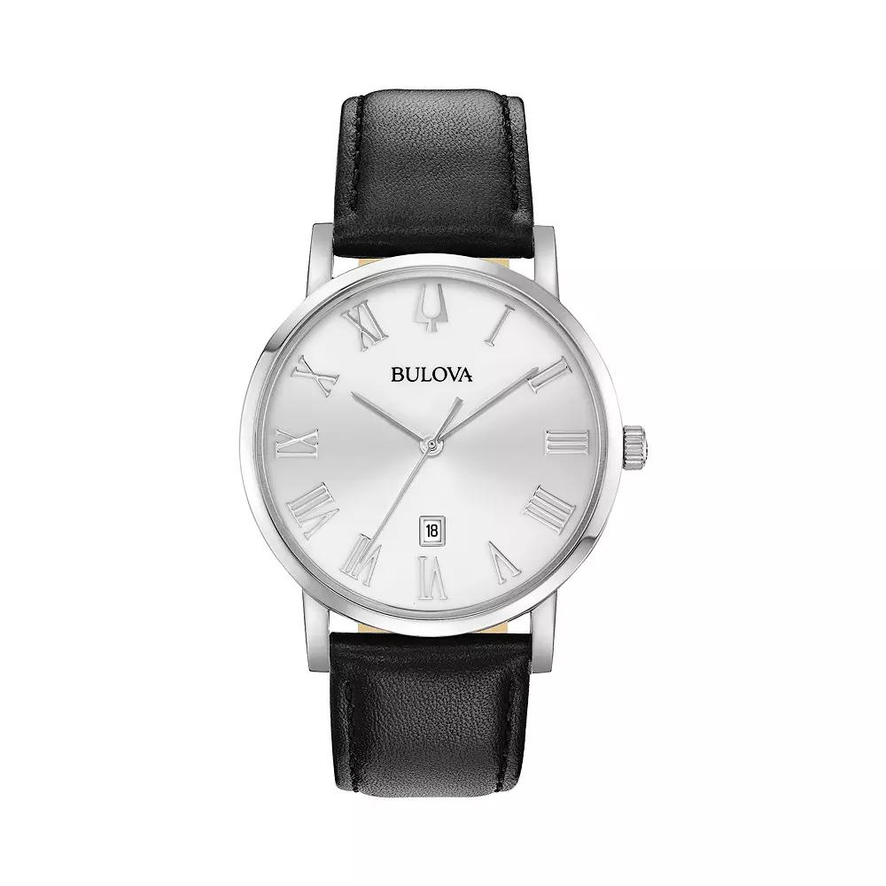 The simple, yet sophisticated design of this mens leather watch from Bulovas exclusive American Clipper collections makes it the perfect addition to any casual or business attire. The simple, yet sophisticated design of this mens leather watch from Bulovas exclusive American Clipper collections makes it the perfect addition to any casual or business attire. FEATURES Date window DISPLAY Dial color: silver-tone sunray Face cover material: mineral crystal CASE Material: stainless steel Diameter: 40 mm BAND Material: brown leather Clasp: buckle Circumference: adjusts from 140 mm to 230 mm Width: 22 mm DETAILS Movement: quartz Power: battery Water resistance: 30 meters Packaging: gift boxed Warranty: manufacturers 3-year limited For warranty information please click here Gift Givers: This item ships in its original packaging. If intended as a gift, the packaging may reveal the contents. Size: Large. Color: Black. Gender: male. Age Group: adult.