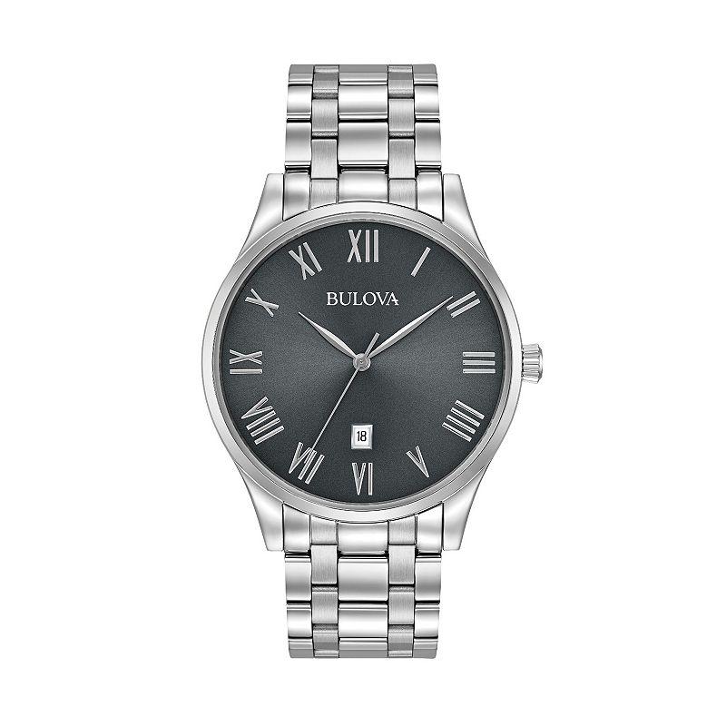 For a look that will simply never go out of style, reach for this handsome mens watch from the Bulova Classic collection.FEATURES Date window DISPLAY Dial color: charcoal sunray Face cover material: mineral crystal CASE Material: stainless steel Diameter: 40 mm BAND Material: stainless steel Clasp: hidden deployment Circumference: 228 mm Width: 20 mm DETAILS Movement: quartz Power: battery Water resistance: 30 meters Warranty: manufacturers 3-year limited For warranty information please click here Model number: 96B261 Size: One Size. Color: Grey. Gender: male. Age Group: adult.
