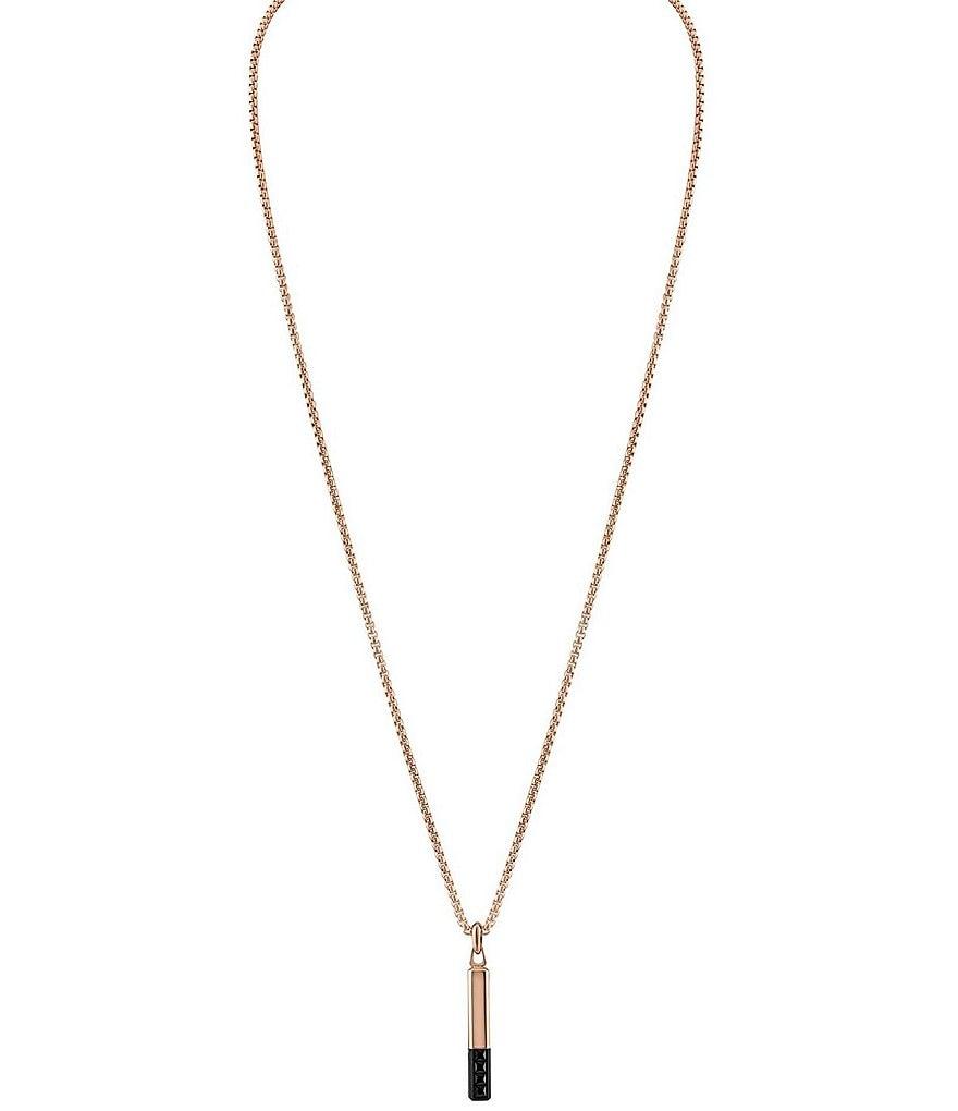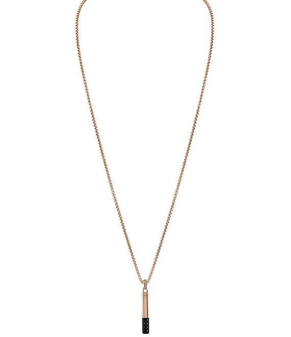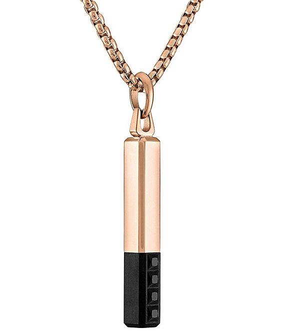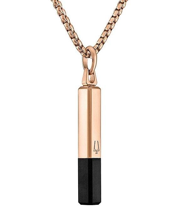 Bulova Steel Men's Rose Gold Two Tone Stainless Steel Bar-Shaped Long Pendant Necklace