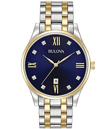 Number of Batteries: 1Included: 1 Watch(es)Features: Water ResistantPower Source: AutomaticWatch Movement: QuartzBand Color: Two ToneDial Color: BlueMetal Color: Two ToneCase Thickness: 6.7mmCase Width: 40mmBand Content: Stainless SteelCase Materials: 100% Stainless SteelCare: Wipe CleanCountry of Origin: Imported