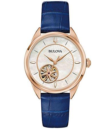 Bulova Womens Sutton Automatic Blue Leather Strap Watch