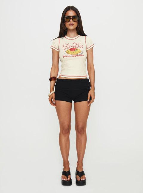 Ciao Bella Shirred Graphic Top Cream