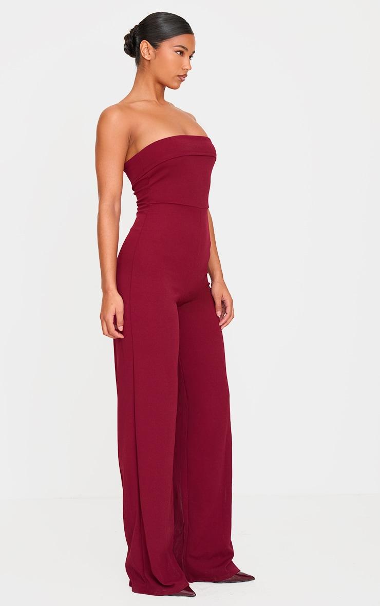 Introducing classy silhouettes with this burgundy crepe fold over detail wide leg jumpsuit. Made from a burgundy hue crepe material with a fold over detail and wide leg design, this jumpsuit is a must have for all those special occasions. Style with point toe heels and simple accessories for a look that won't go unnoticed. Length approx 145cm/57inch (Based on a sample size UK 8) Model wears size UK 8/ EU 36/ AUS 8/ US 4Model Height - 5ft 6inchp]:!mb-4inch>Brand: PrettyLittleThingCategory: DressesProduct type: Wide Leg JumpsuitColor: BurgundyMaterial: Liverpool CrepeOccasion: Evening
