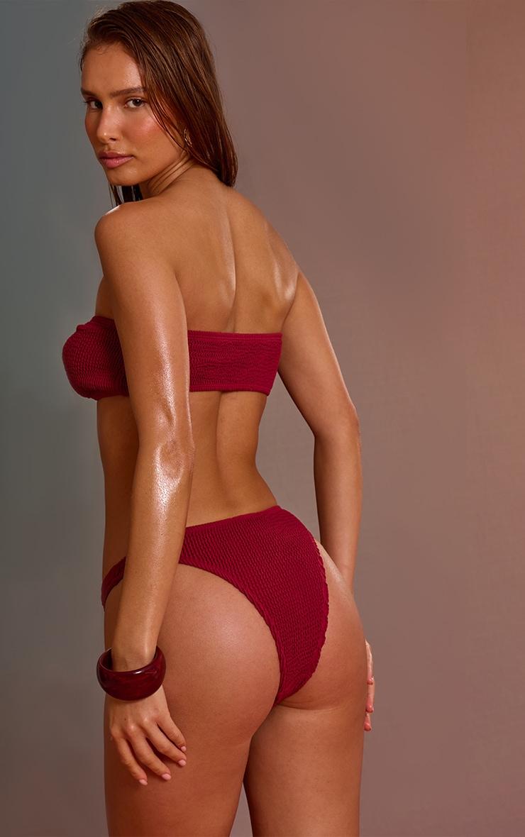 Bring texture to your swimwear with the burgundy crinkle bandeau knot front bikini top. Made from a burgundy crinkle swim material, this bandeau top features a front knot for added shape and detail. Style with high-leg bikini bottoms for a chic finish.Length approx 16.5cm/6.5inch (Based on sample size S)Model wears size SModel Height - 5ft 6inchp]:!mb-4inch>Brand: PrettyLittleThingCategory: SwimwearProduct type: Bandeau Bikini TopColor: BurgundyMaterial: Crinkle SwimOccasion: Day