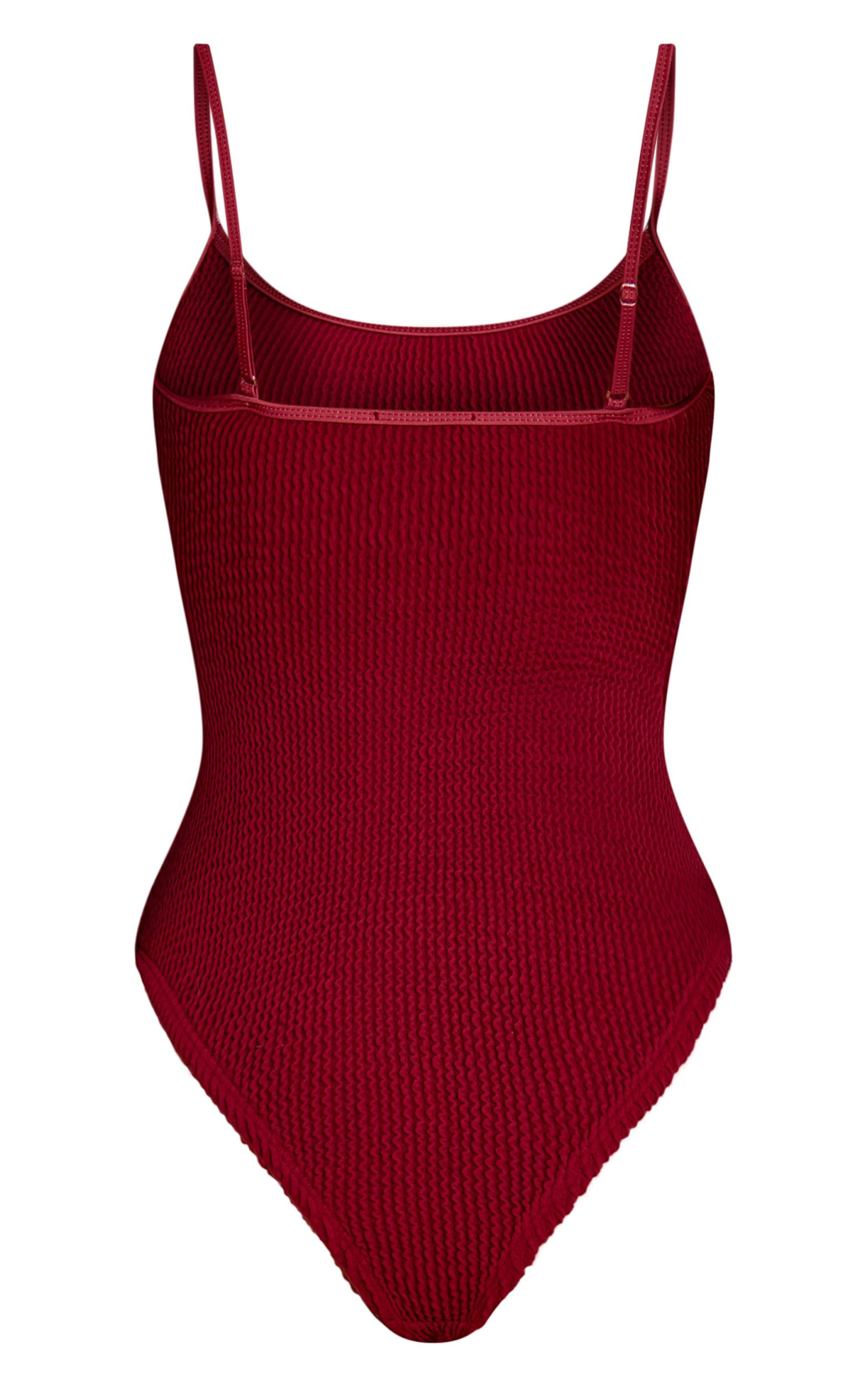 Dive into rich texture with the burgundy crinkle strappy swimsuit. Cut from crinkle-effect stretch fabric, this swimsuit features slim straps and a flattering cut for minimalist swimwear with impact. Pair with a floaty beach cover-up and sandals for poolside chic.Length approx 66cm/26inch (Based on sample size S)Model wears size SModel Height - 5ft 6inchp]:!mb-4inch>Brand: PrettyLittleThingCategory: SwimwearProduct type: SwimsuitColor: BurgundyMaterial: Crinkle SwimOccasion: Day