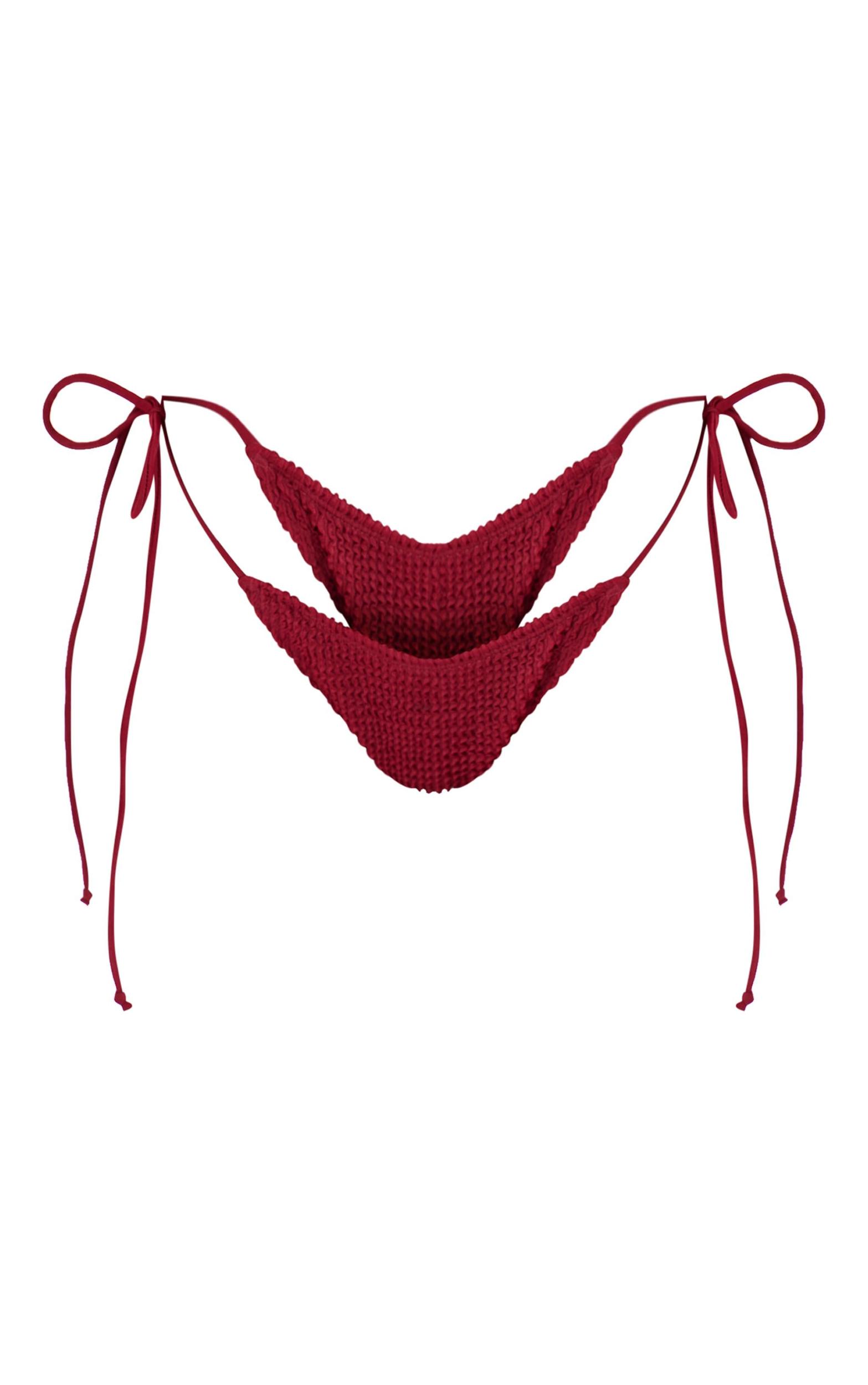 Take the stress out of weekend styling with these burgundy crinkle tie side bikini bottoms. Brought to you in a burgundy crinkle material with a tie side, you really can't go wrong with these bikini bottoms. Style with the matching bikini top and gold accessories for a look that will have eyes on you for all the right reasons. Length approx 29cm/11.5inch (Based on a sample size UK 8) Model wears size UK 8/ EU 36/ AUS 8/ US 4Model Height - 5ft 7inchp]:!mb-0inch>Category: SwimwearProduct type: Tanga Bikini BottomColor: BurgundyMaterial: SwimDesign: PlainSleeves: SleevelessOccasion: Day